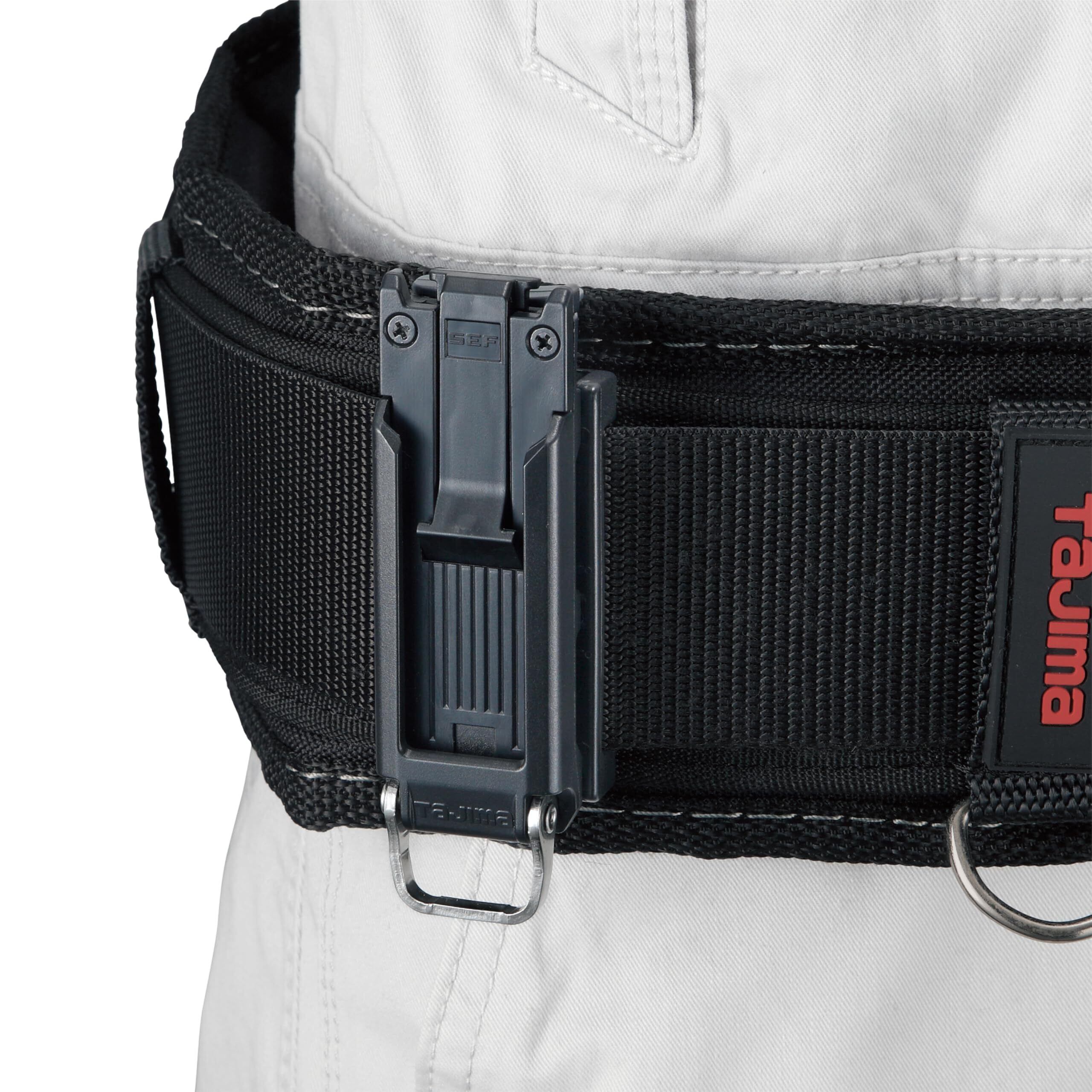 タジマ セフシステム セフホルダー胴ベルト用 樹脂 スリム SF-SHLD 取付場所に悩まないスリムタイプ 腰周りの左右にとらわれないトップボタン方式 セフホルダー胴ベルト用 樹脂 スライドストッパー付 安全ロープ取付環付 軽さ重視の樹脂タイプ