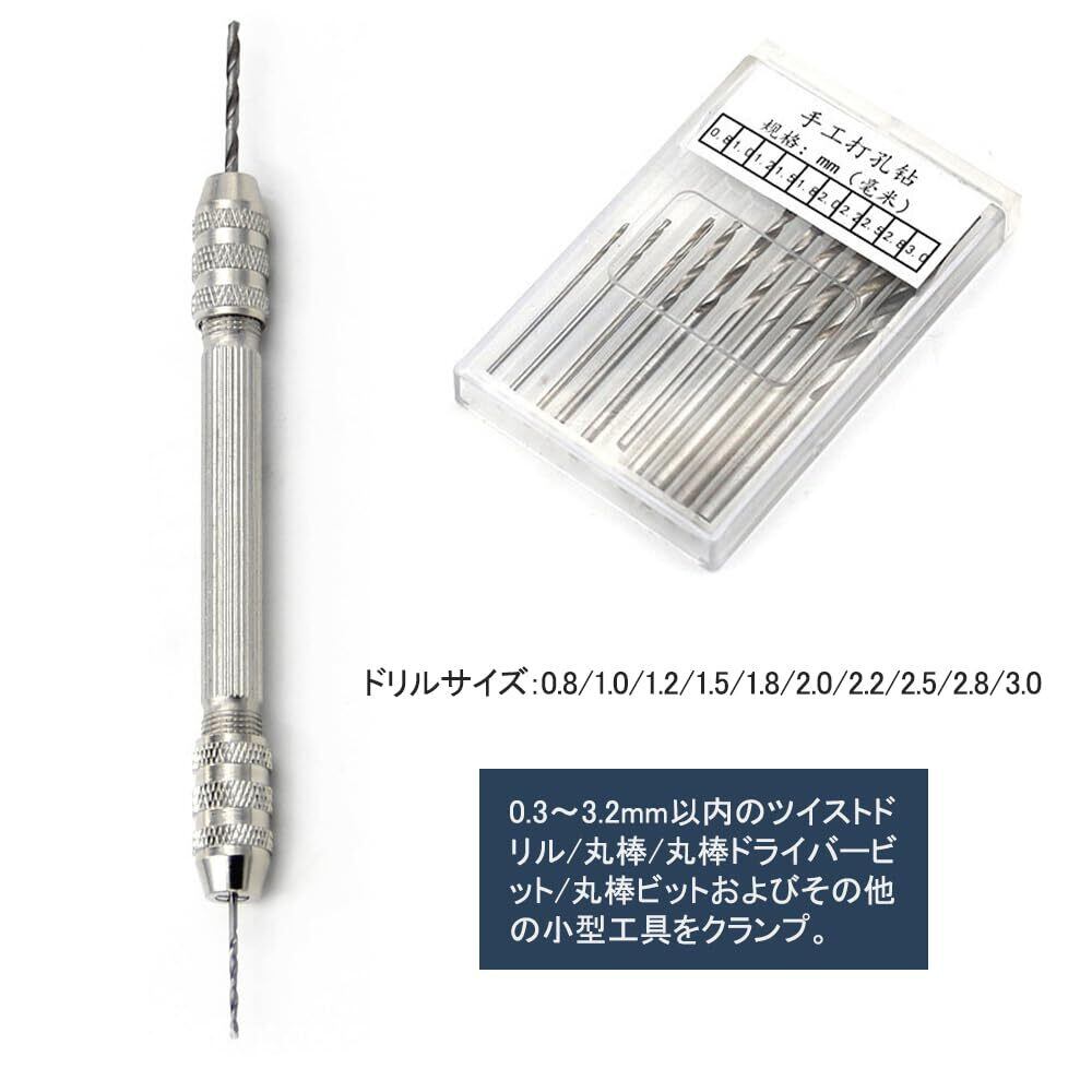 OptiPro ピンバイス 両端ハンドドリル 10本ドリル刃 小型 精密 手動ドリル 工芸品 ジュエリー レジン プラモデル 穴あけツール DIY工具 (1本+10本ドリル刃)