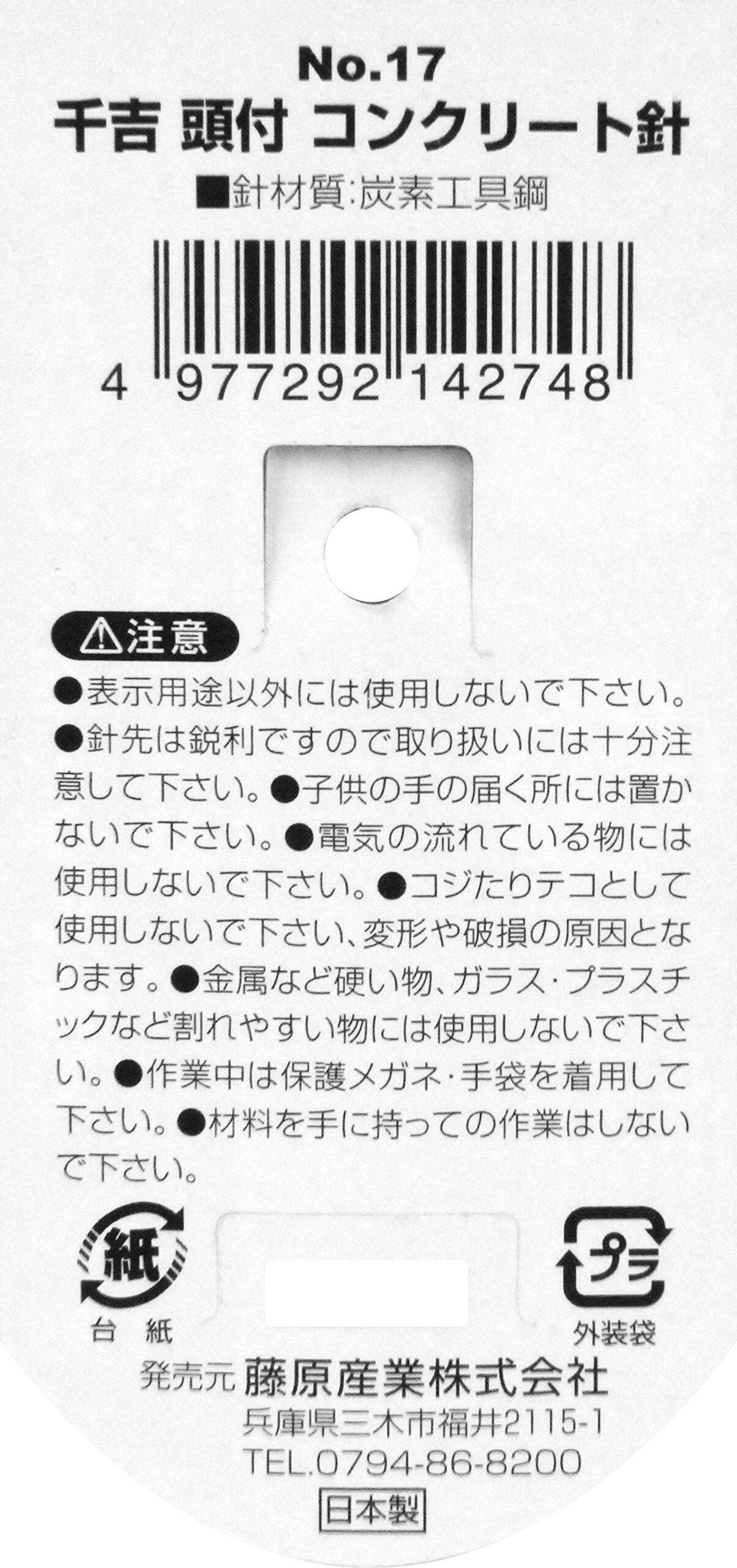 千吉 頭付コンクリート針 タイル貼り モルタル施工 ケガキ 穴あけ NO.17