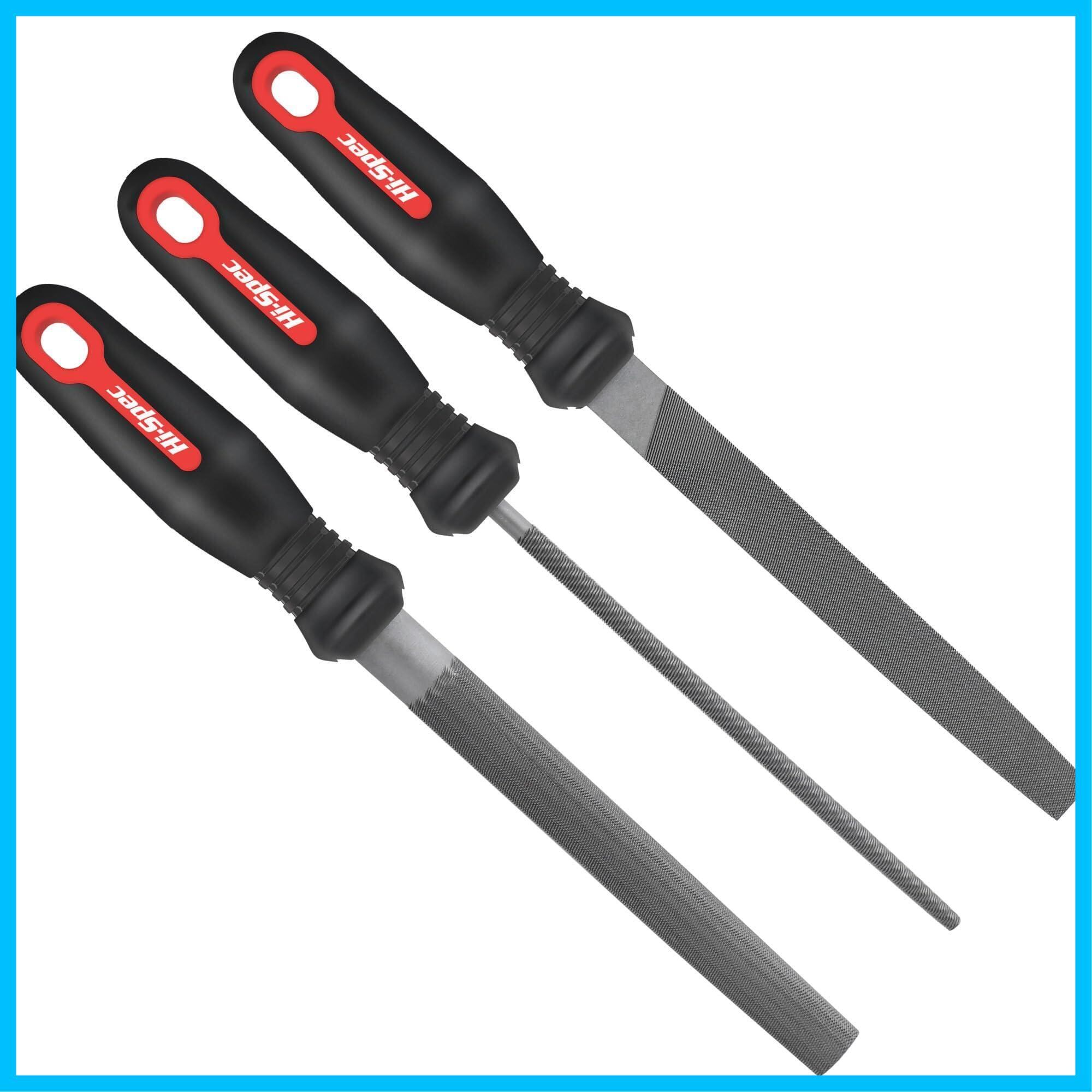 Hi-Spec 3本組 メタルハンドヤスリセット – 大型スチールヤスリ、鉄工・金属加工・木工用 | 平・丸・半丸ヤスリ | 高炭素鋼製、耐久性抜群