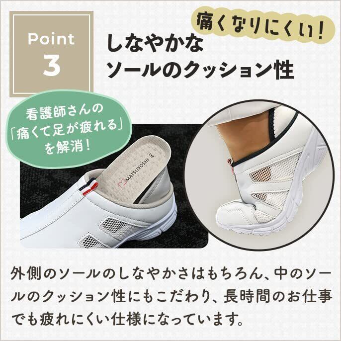【現場の声が詰まったナースシューズ】マツヨシが現場の声を集めて開発したオリジナルのナースシューズは、ナースの皆様におすすめのポイントがたくさん詰まっています!