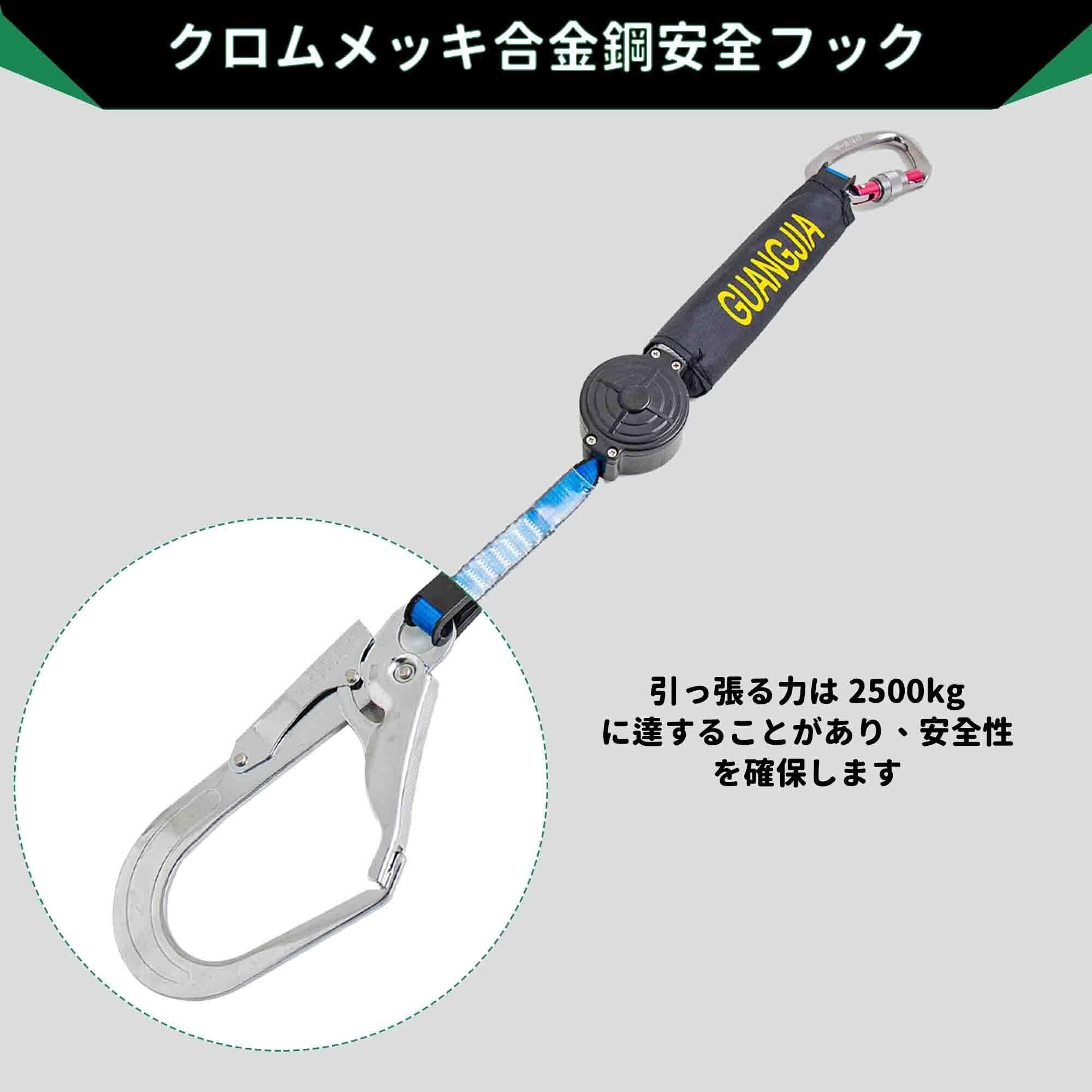 GUANGJIA アルミニウム新仕様の軽量1.13kgランヤード 巻取りランヤード 安全帯 墜落制止用器具 ロック装置なしランヤード 巻き取りタイプ 1号ロープタイプ フルハーネスタイプ/ベルトタイプ ユニバーサル対応 新仕様落下防止全身保護キット、建設工学、動力工学、ポール工学、高安全作業 (ミニ リール装置)