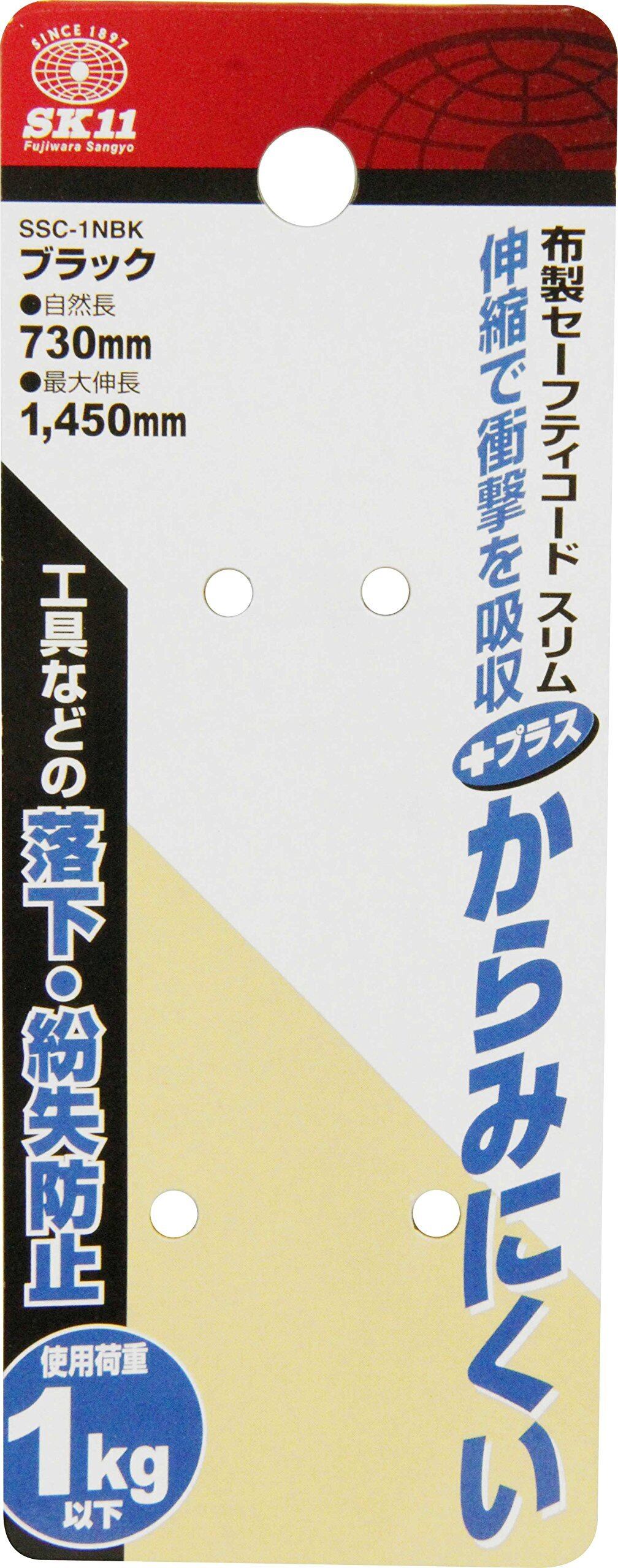 SK11(エスケー11) からみにくい 布製セーフティコード 自然長約730mm ブラック SSC-1NBK