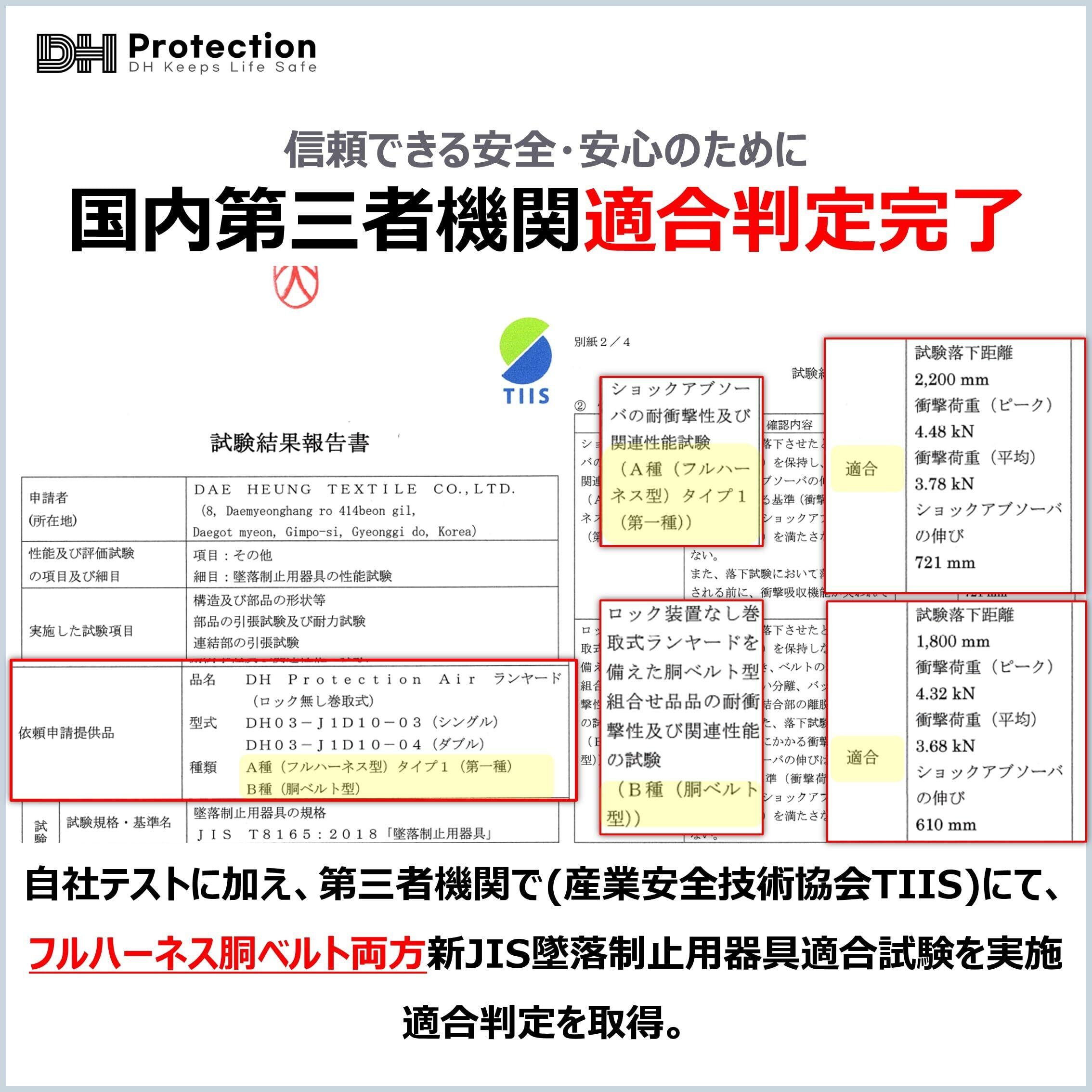 DH PROTECTION 新規格 EX AIR 軽量 巻取ランヤード 1種 胴ベルト 兼用 100㎏以下 胴ベルト フルハーネス ランヤード 墜落制止用器具 安全帯