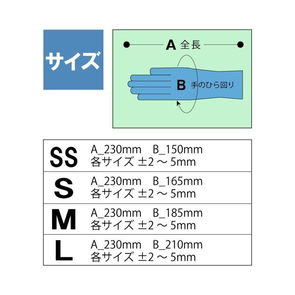 Lサイズ:全長230mm±2-5mm 手のひら回り210mm±2-5mm