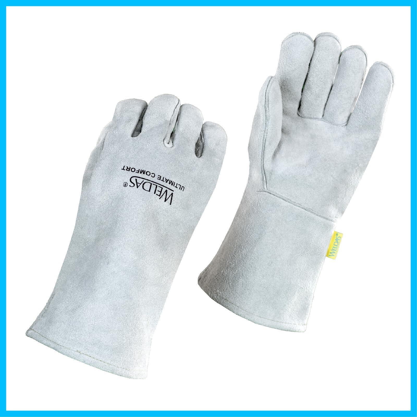 Weldas エコノミー溶接手袋、コットンの総裏地付き、汎用性の高いウイングサムとガンカットデザイン、10-2112L、グレー、Lサイズ。