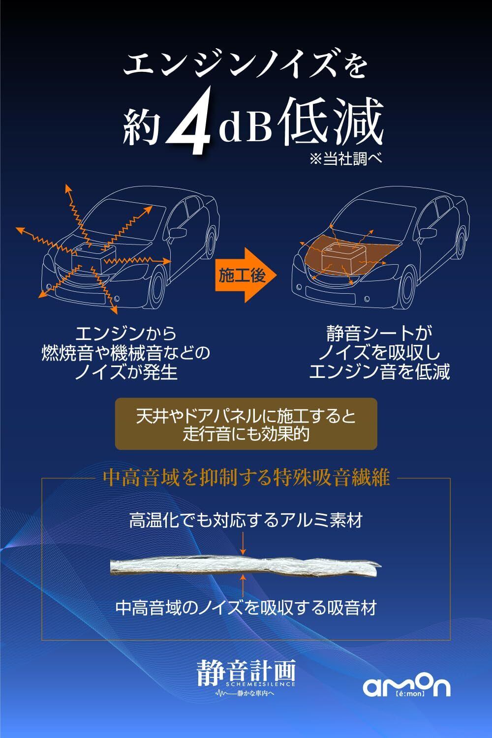 エーモン(amon) 静音計画 エンジンルーム静音シート 約720×1200mm 厚さ約4mm 4816 シルバー