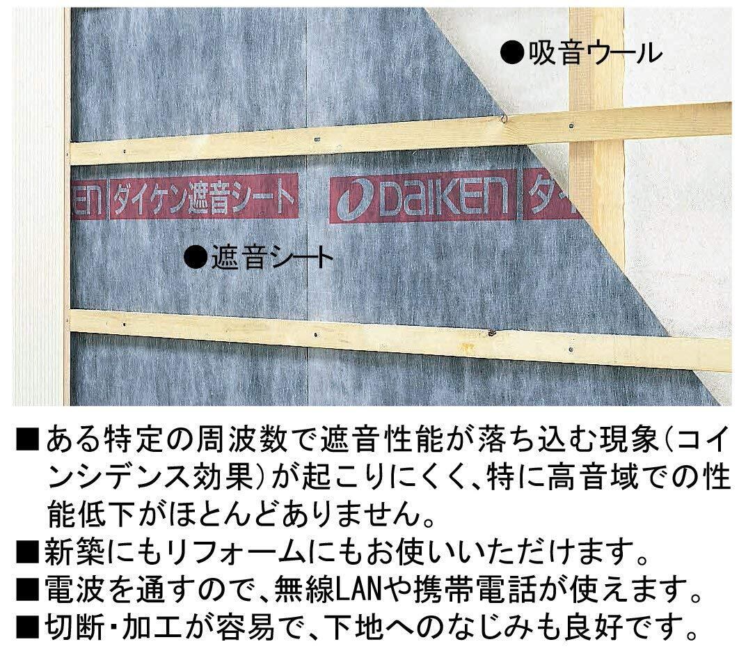 遮音用の基礎材料。隣室の話し声やテレビの音などの生活音の漏れを改善します。防音内装材と併用すればさらに効果的です。
