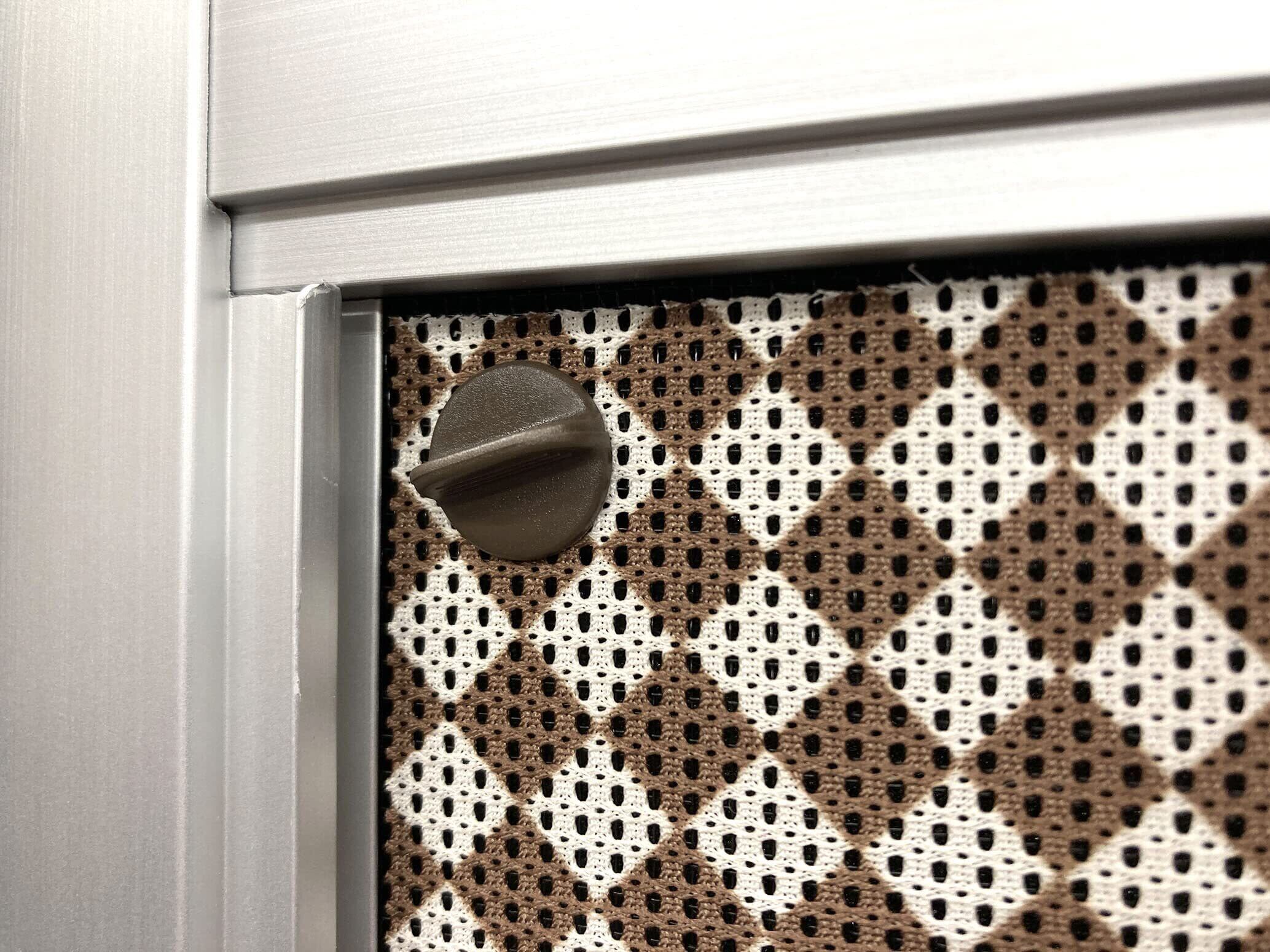 ●モダンな柄で網戸をオシャレにデコレーションして、目隠し・日よけ効果もプラス!●粘着メッシュで貼付け簡単!●剥がれ防止の留め具付きで、網戸と目隠しシートを 挟み込み、くるっと回してロック。
