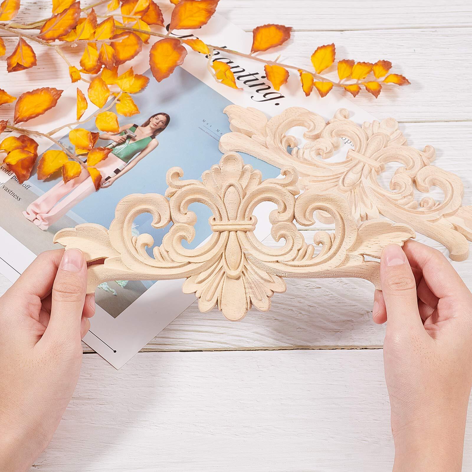 SUPERFINDINGS 2ピース 木製花 家具装飾 無塗装アンレイフレーム 10x22cm/3.9x8.7inch 木彫りアップリケ コーナー モールディング レリーフ ヨーロッパスタイル ホーム木彫り ドア 壁 天井 ランプ用デコレーション インテリア デコ素材 工芸DIY
