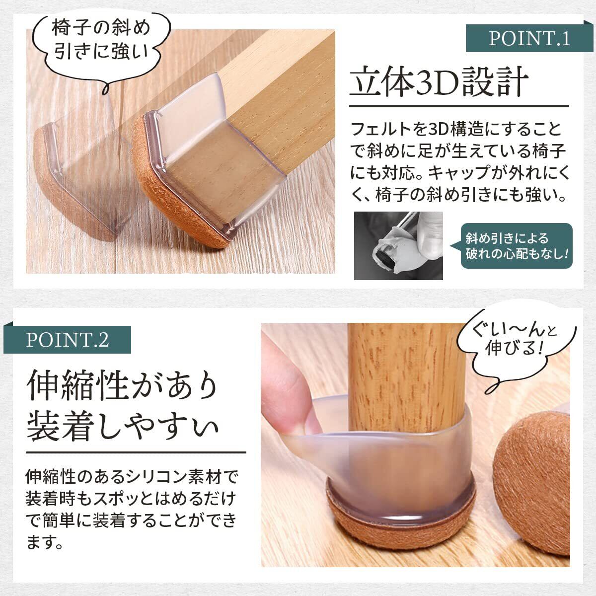 「高品質素材」伸縮性、耐久性に優れたシリコンキャップと、底は防音性と磨耗性を備えるフェルトで、簡単装着と騒音・摩擦の軽減を実現!さらにキャップ内部に滑り防止の凹凸が付いているので、長時間使ってもズレません。