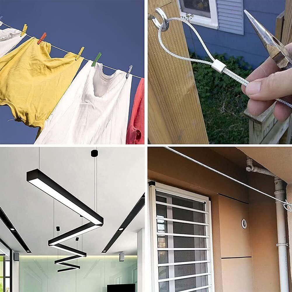 【材質】高品質の304ステンレス製で、防水性、防錆性、耐久性に優れています。表面はなめらかで,軽量、そのため、屋外の使用が多いワイヤーに最適です。