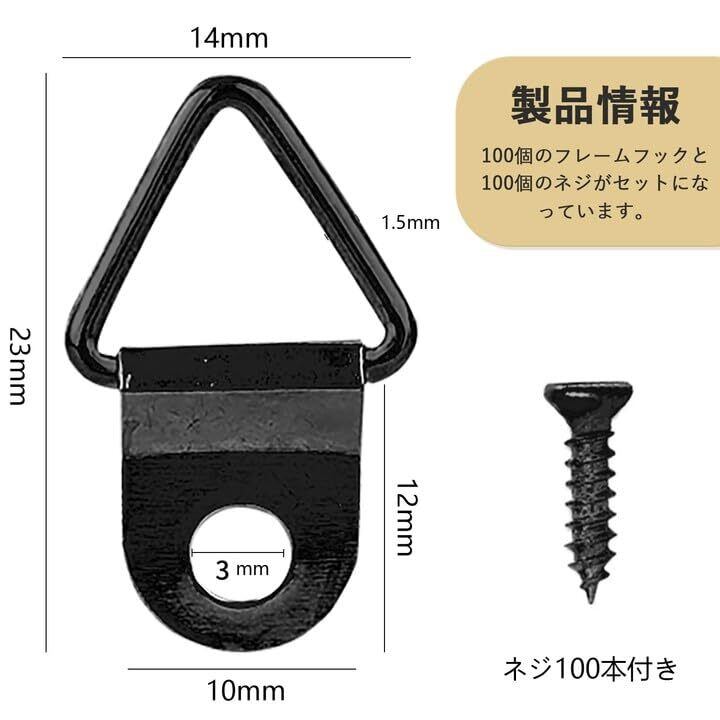 ADOFUN 三角吊りカン 額吊り金具 木ネジ付き【100個セット】ビラカン 額縁金具 豆カン フック 木ネジ付き 箱付き 22×10mm (黑)