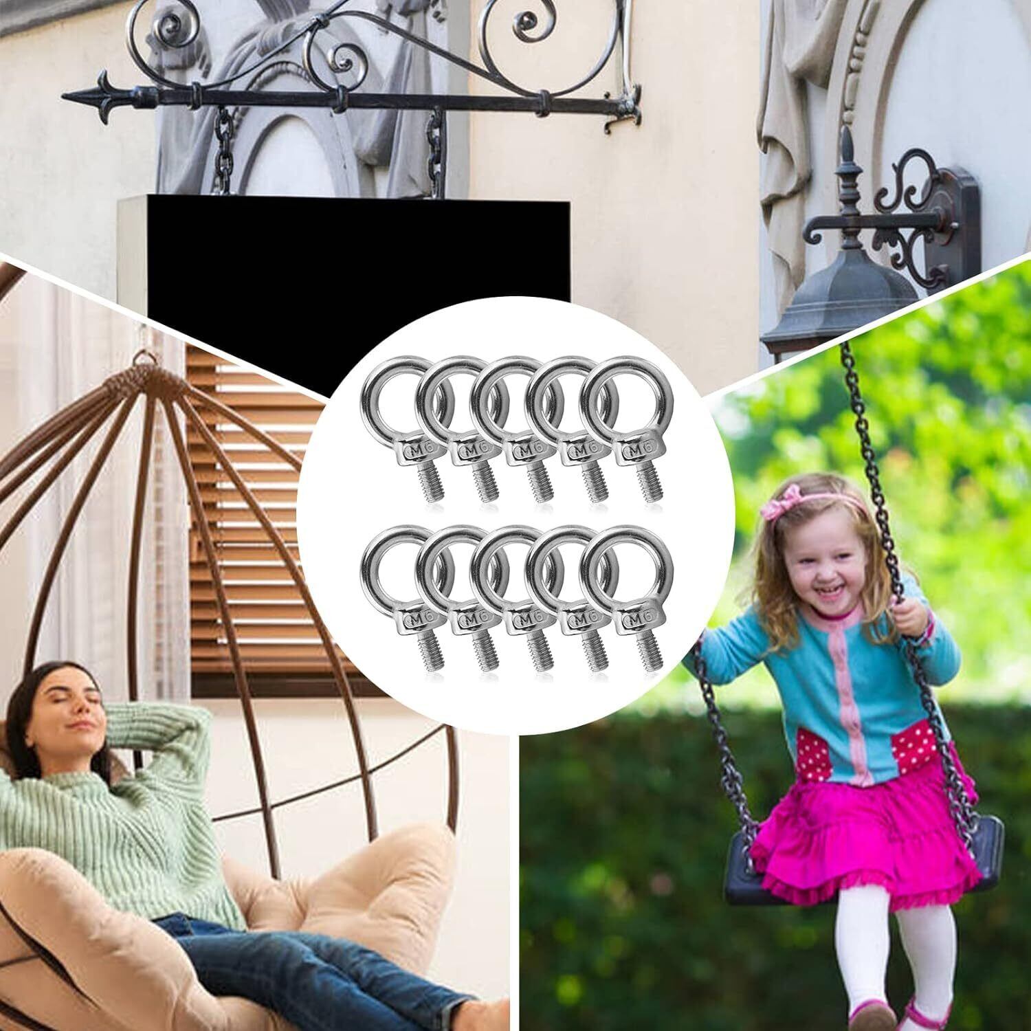 【新春セール】M6 12mm アイボルト ねじボルト ボルトセット M6メススレッド ナット ネジ ハードウェア 金具 固定 吊り下げ ステンレス製 耐食性 ロープ ワイヤー M6 10個セット | metta