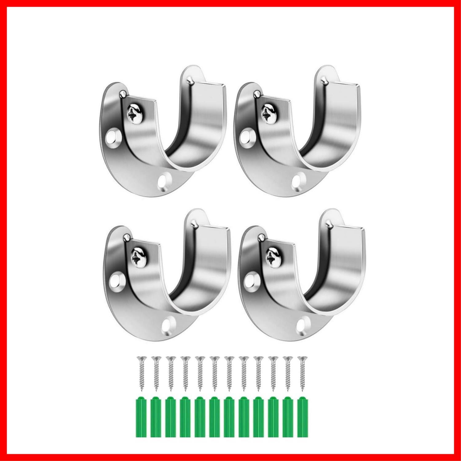 YFFSFDC クローゼットロッドサポート ポール 固定 金具 U字型 4個入り ステンレス鋼 フランジロッドホルダー フランジソケット 固定 パイプ固定金具 ネジ付き (シルバー ロッド径25mm)
