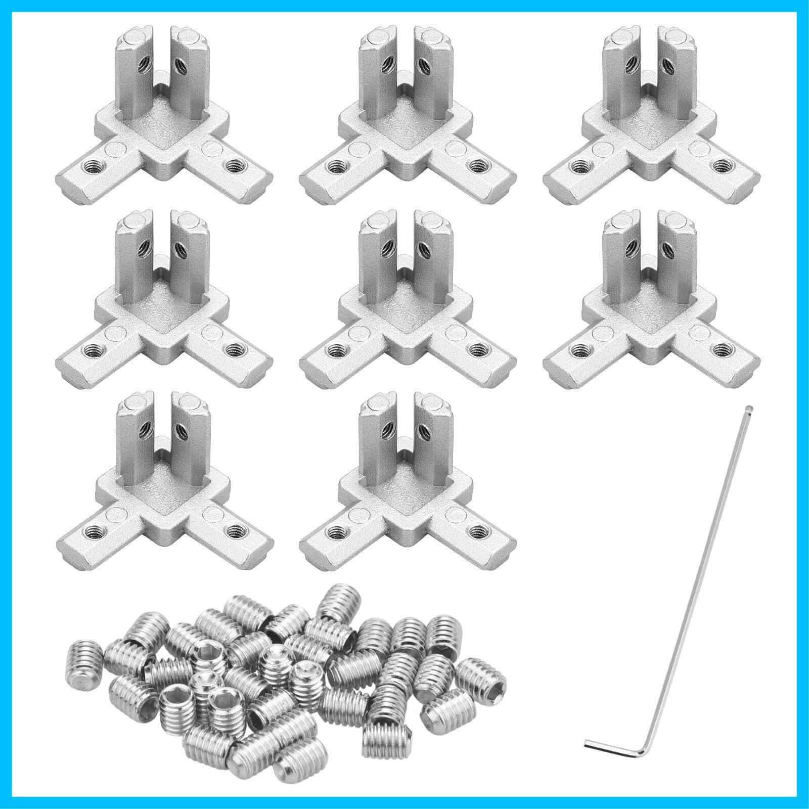 3ウェイエンドコーナーブラケットコネクタ 取り付けネジ付き 標準6mm /8mmTスロットアルミニウム押出プロファイル2020/3030/4040シリーズ用 (8 2020 シルバー)