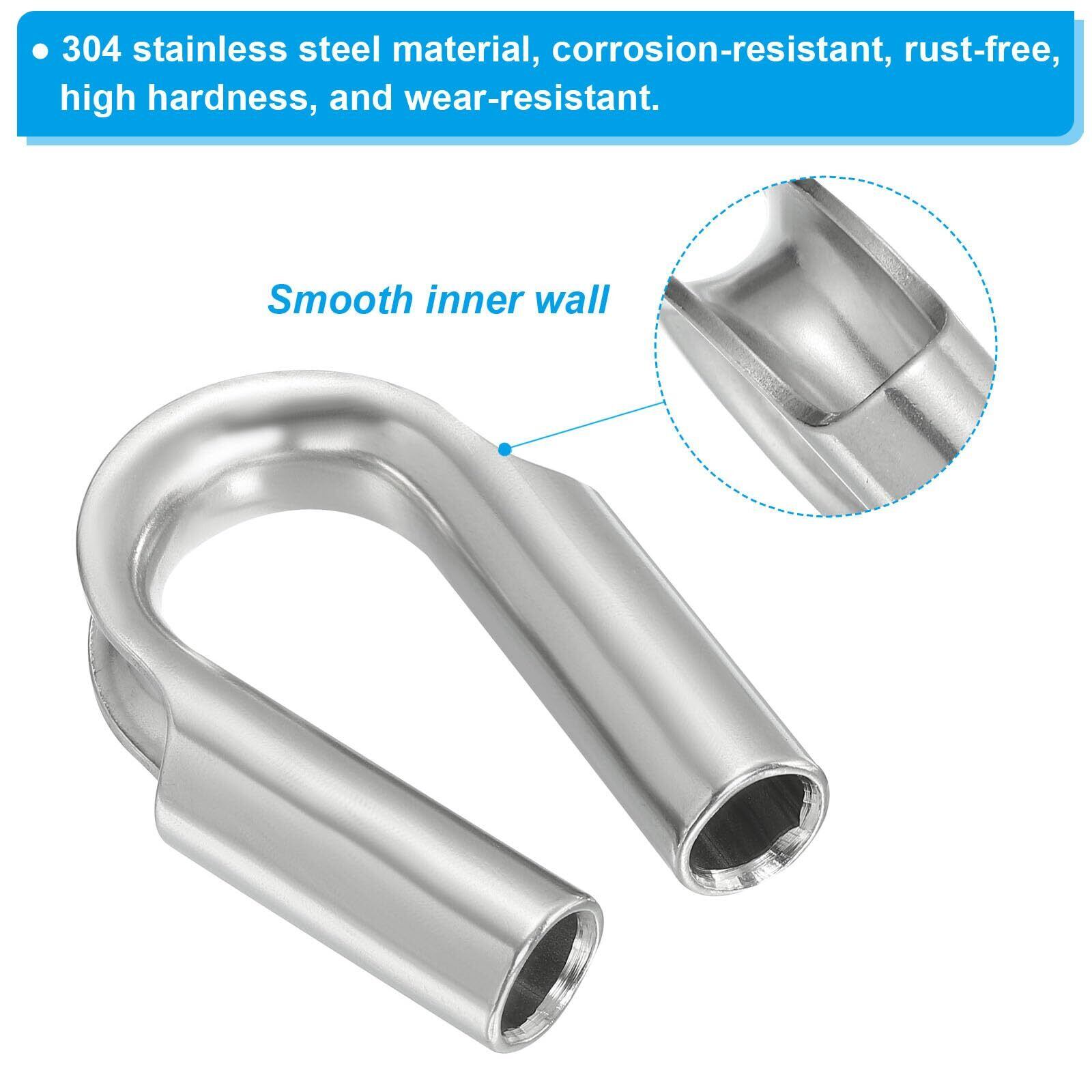 PATIKIL 10 mm ワイヤーロープチューブシンブル 2個 304ステンレス鋼 ロープシンブル 牽引索具用 シルバー