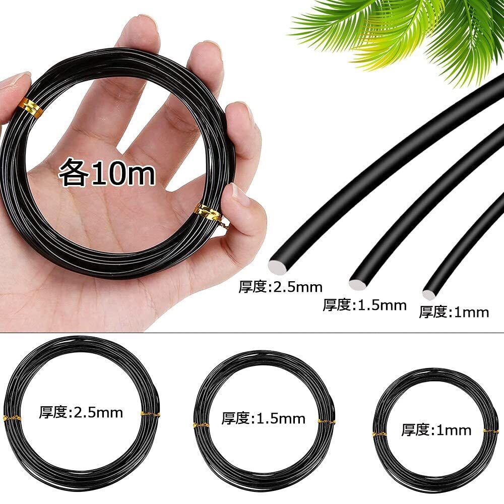 ZADAFINA 盆栽用 針金 3個セット 園芸用アルミ線 園芸 ワイヤーアート クラフト やわらか針金 誘引 結束 家庭菜園 アルミ線 1mm/1.5mm/2mm 長さ10m 黒