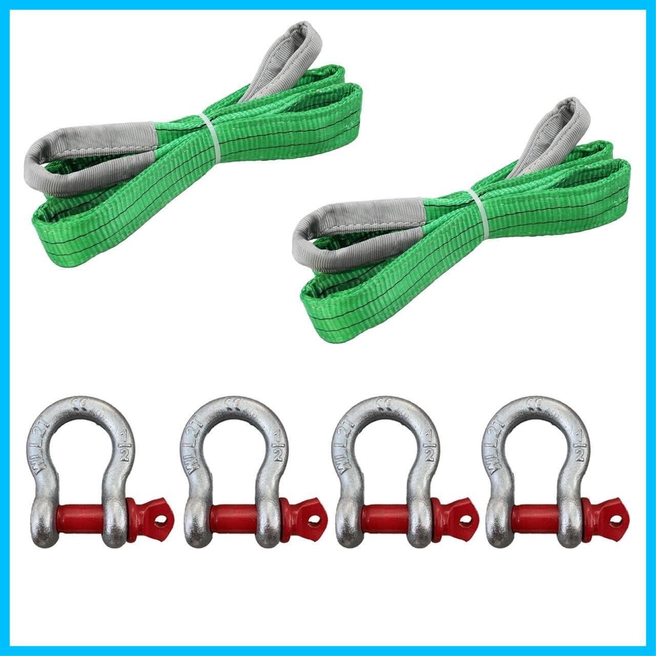 【人気商品】HELIX スリングベルト 【2本セット】 2m 幅50mm 使用荷重2000kg ナイロンスリング 吊上げ 牽引 ヘリックス 2T 日本語説明書付き 【鍛造シャックル 弓型 2t 4個セット】 | metta