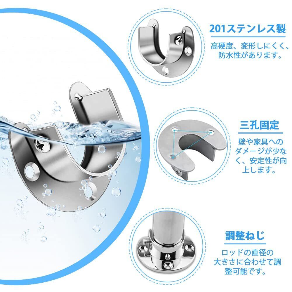 ↪【多機能なフランジソケット】:U字型フランジソケットは壁や木製の表面にしっかりと固定され、物干し竿やカーテン掛けのポールを固定する金具です。クローゼット、浴室、キッチン、リビング、ランドリー、ベランダなどの場所に適用されています。タオル、衣類、カーテン、ネクタイ等を簡単にぶら下げることができます。
