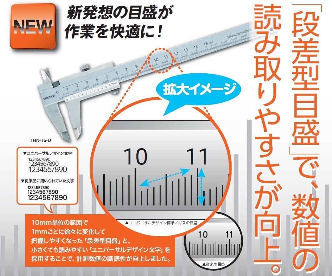 TRUSCO(トラスコ) ユニバーサルデザイン標準型ノギス 150mm THN-15-U
