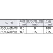 色:メタルブルー 糸長さ(m):15 自動巻取糸長さ(m):8 糸径(mm):0.6 全長(mm):180 墨タンク最大容量(ml):8