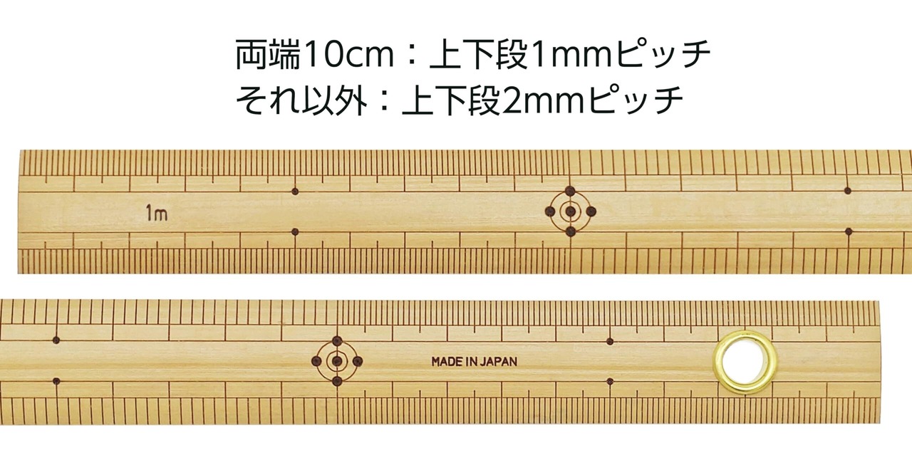 製品サイズ(mm):1000mm×28mm×5mm 製品重量(g):108g パッケージサイズ(mm):1050mm×36mm×5.5mm パッケージ重量(g):112g 仕様: 目盛:メートル目盛