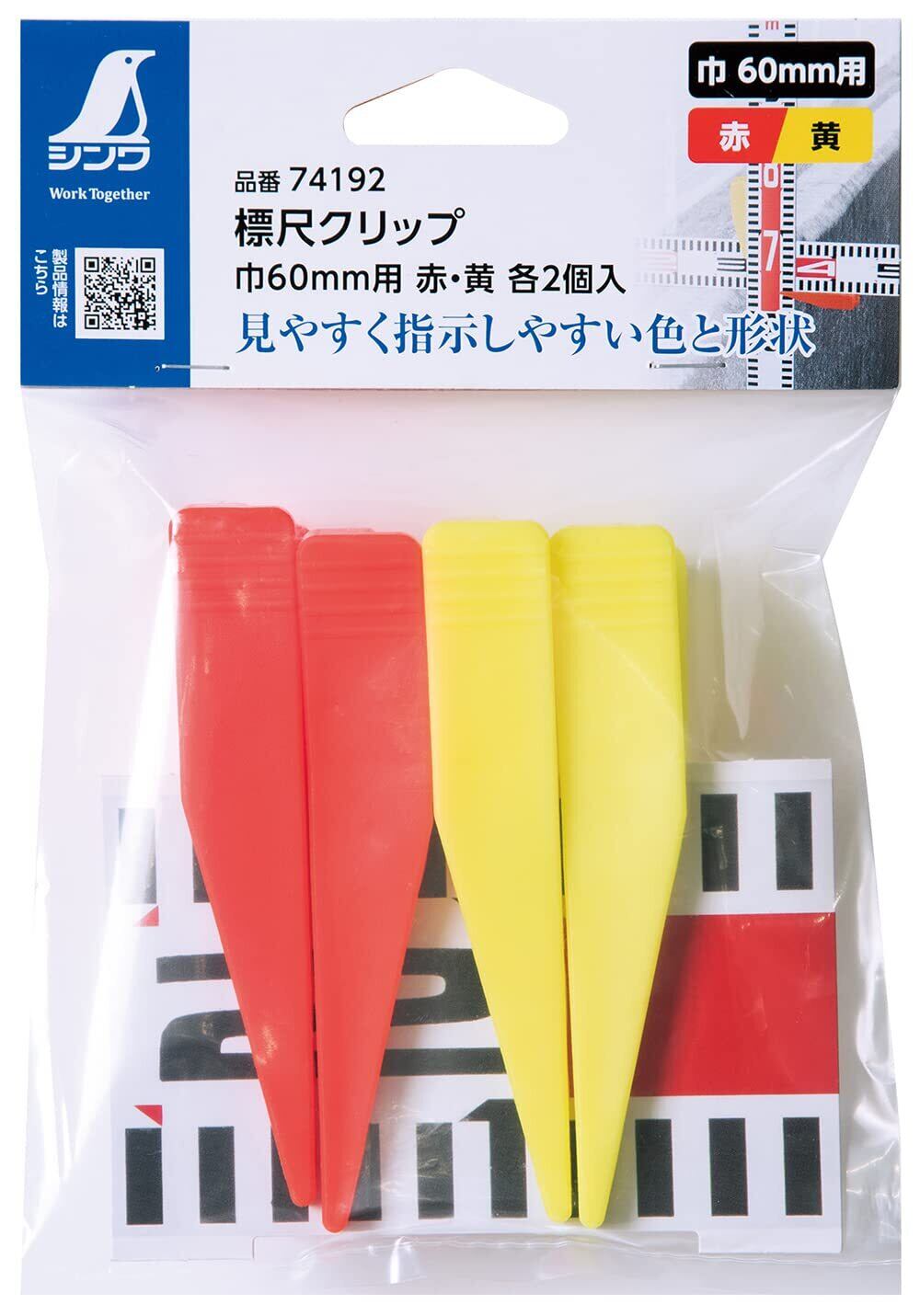 シンワ測定(Shinwa Sokutei) 標尺クリップ 巾60㎜用 赤・黄 各2個入74192