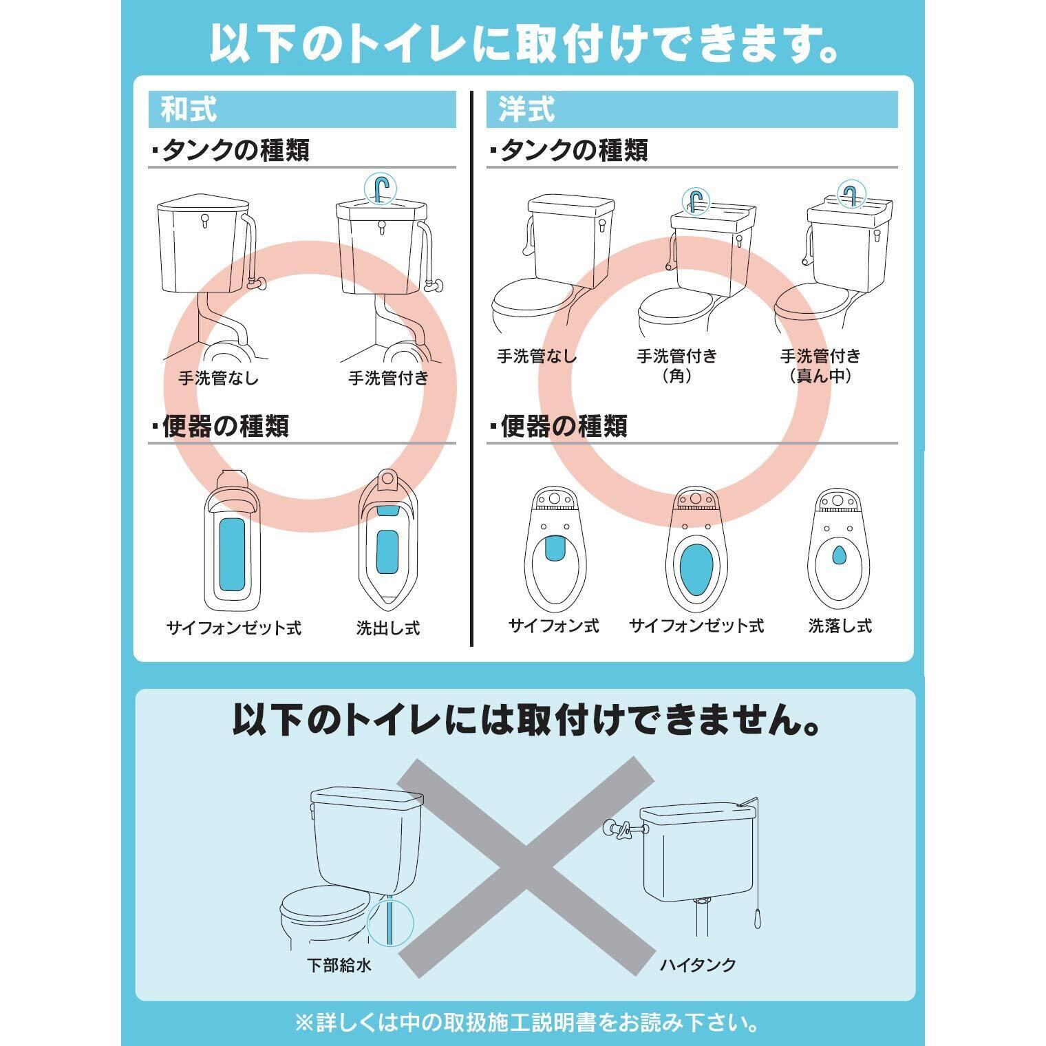 ・手洗管接続部を回転可動させる事で、横給水手洗菅角付タイプに対応できる