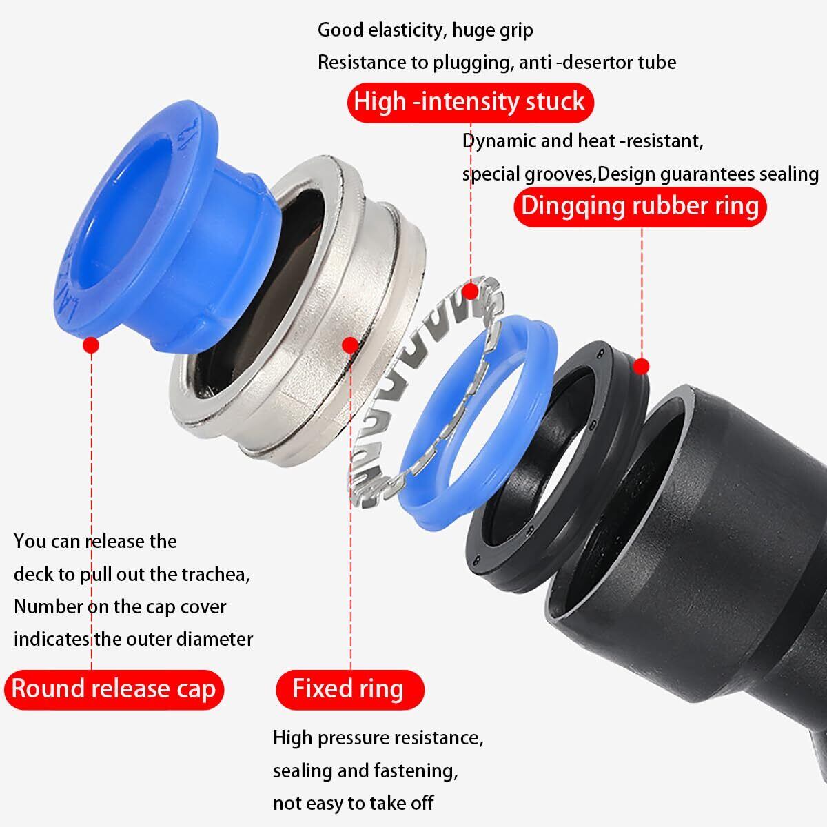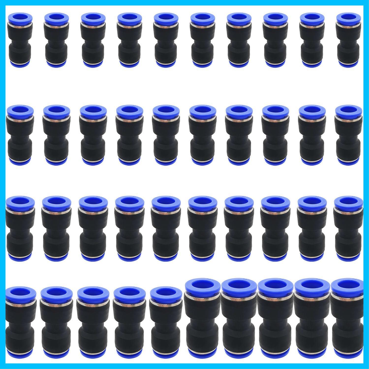 空気圧継手、Dujelixaプラスチック直径接続フィッティングチューブ接続セット、プッシュフィットフィッティングチューブ(40個:4/6/8/10/12mmコンボ)、空気圧プッシュフィット継手