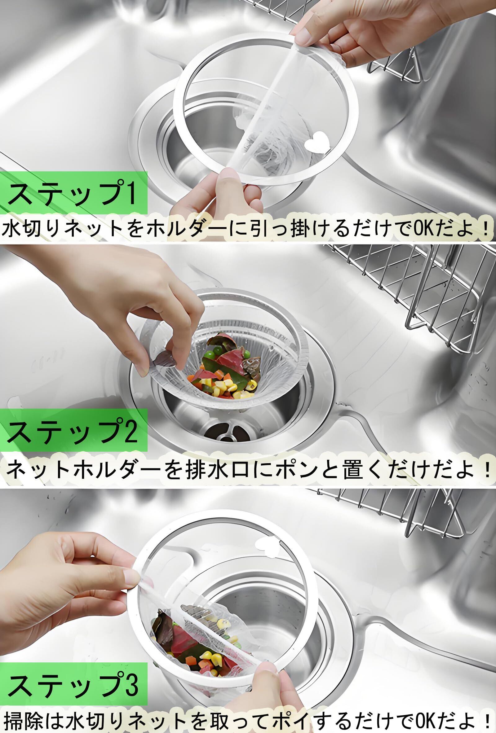 【掃除の手間から解放】バスケット不要で水切りネットを固定するだけで、排水溝のゴミ受けの掃除が不要に。面倒な掃除から解放され、ストレスフリーなキッチンライフを実現します。