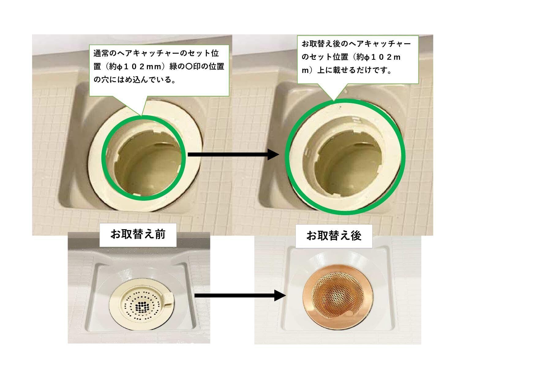 ・φ10.2のヘアキャッチャーと交換してご使用いただけます。現在ご使用の製品を外して置くだけです。