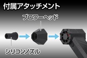 セット内容・付属品:本体・ブロワーヘッド・シリコンノズル・USB Type-Cケーブル (50cm)・専用充電池(内蔵)、使用電池:専用充電池