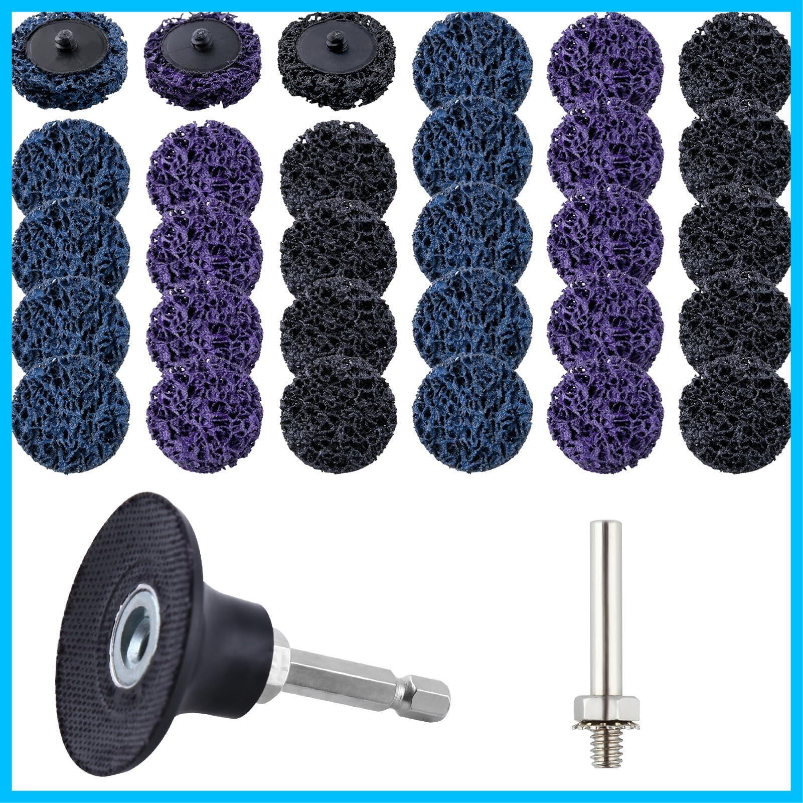 LEONTOOL クイック交換イージーストリップディスク 50mm 32個セット プロペイントストリッパーホイールディスク クリーニング 研磨 ディスク ベタディスク サビ 塗装用 研磨グラインダー サビ落とし グラインダー 研磨パッド サビ取り 塗装 落とし DIY木材 つや消し 研削金属 サンダー ペンキ グラインダー 6.35mm軸 ホルダー2個付き (パープル ブルー ブラック)
