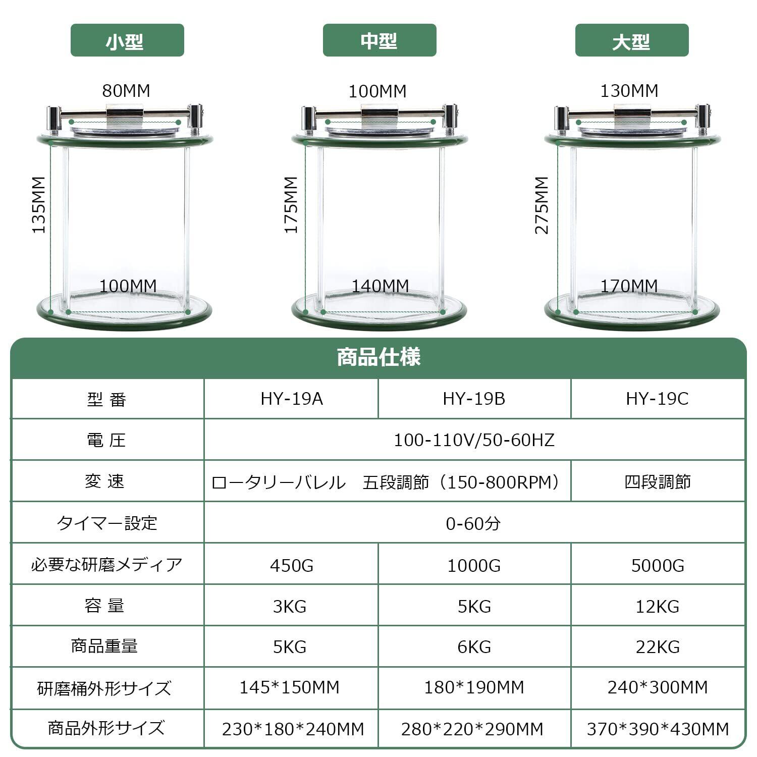 Huanyu バレル研磨機 チェンジバレル研磨機 3kg容量ロータリーバレル 五段速度調整 タイマー付き アクセサリー/小物/天然石/金属/パーツ研磨 面取り サビ取り (小型)