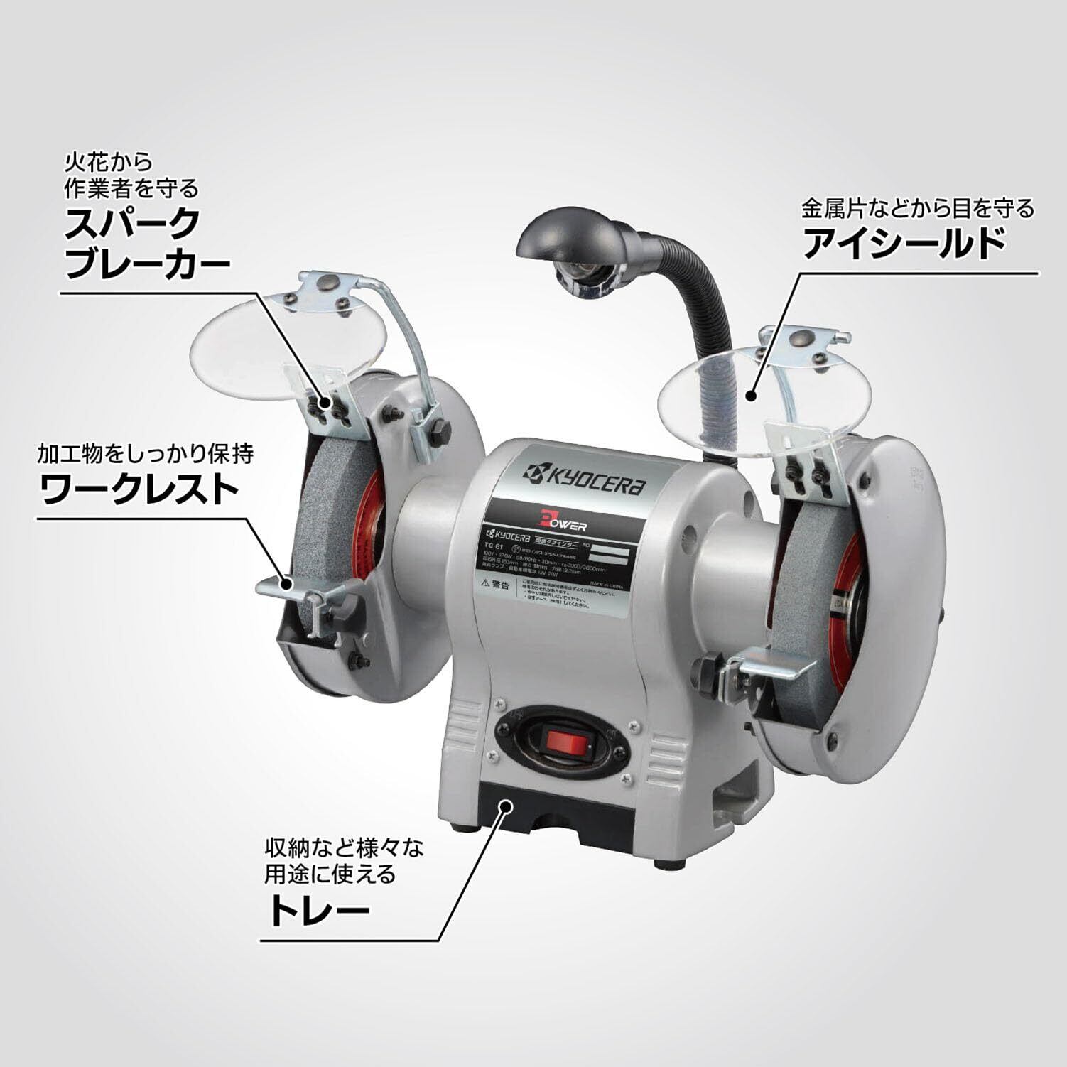 京セラ(Kyocera) 旧リョービ 両頭グラインダ 砥石径150mm TG-61 632550A 【バイト・ドリルの研磨、バリ取りに最適】 砥石径150mm 定格使用時間30分