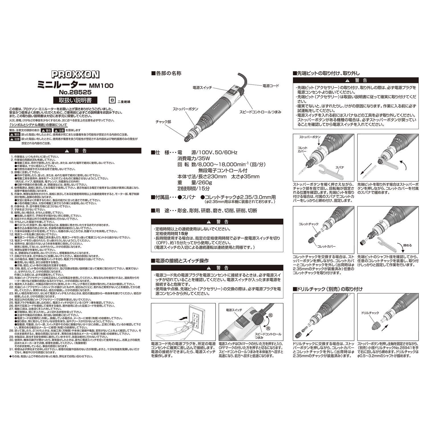 プロクソン(PROXXON) ミニルーター 回転数が調節可能 MM100 No.28525