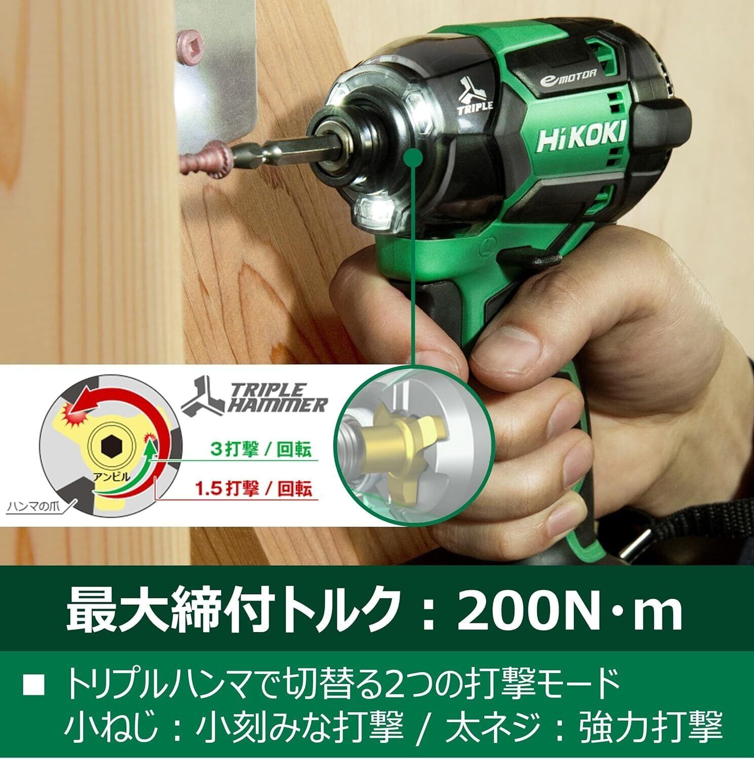 HiKOKI(ハイコーキ) 36Vインパクトドライバ WH36DC(NNB) ストロングブラック 小型軽量化 ビット振れ軽減 トリガーフィーリング向上 蓄電池・充電器・ケース別売り