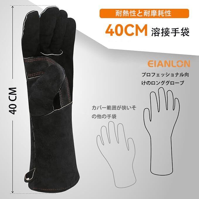 EIANLON 耐熱グローブ 牛革 溶接手袋 焚き火 グローブ ロングタイプ-耐火皮革 キャンプ 手袋は暖炉火坑木炉かがり火炉グリル及び各種溶接設備に適している