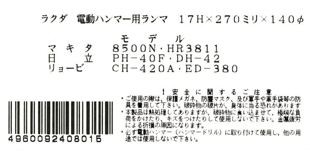 清水製作所 ラクダ 電動ハンマー用ランマ 10044 17H×270mm140φ 1476aj
