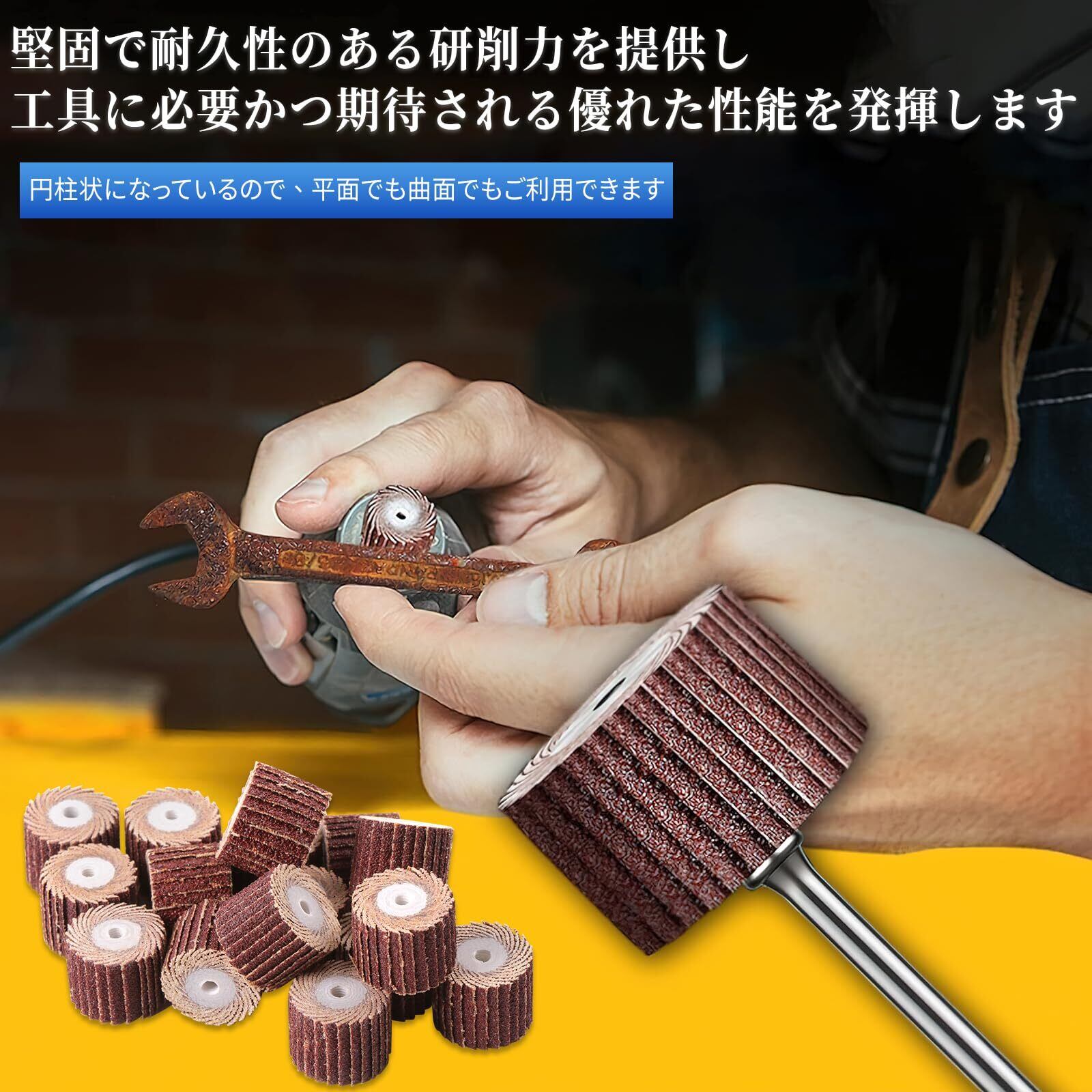 IROKCAKPT フラップホイール #240番 3mm軸 サンディングフラップホイール 【30個セット+5個軸】リューター回転工具用