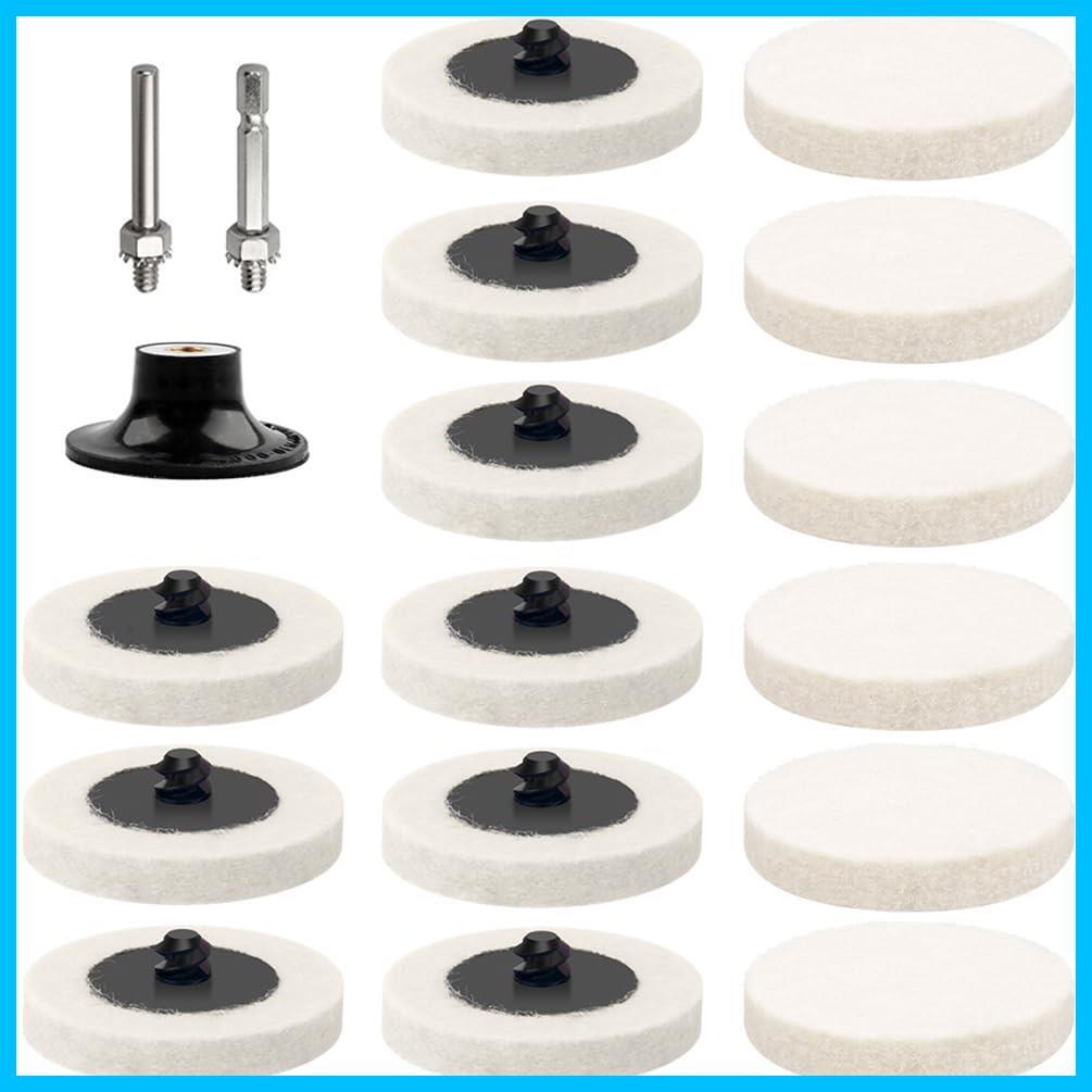 Ninkisann 15枚セット ポリッシャー バフ 50mm 羊毛 フェルトバフ 六角軸 電動ドリル バフ ポリッシャー 車 ガラス研磨用バフ (フェルトバフ 15枚セット)