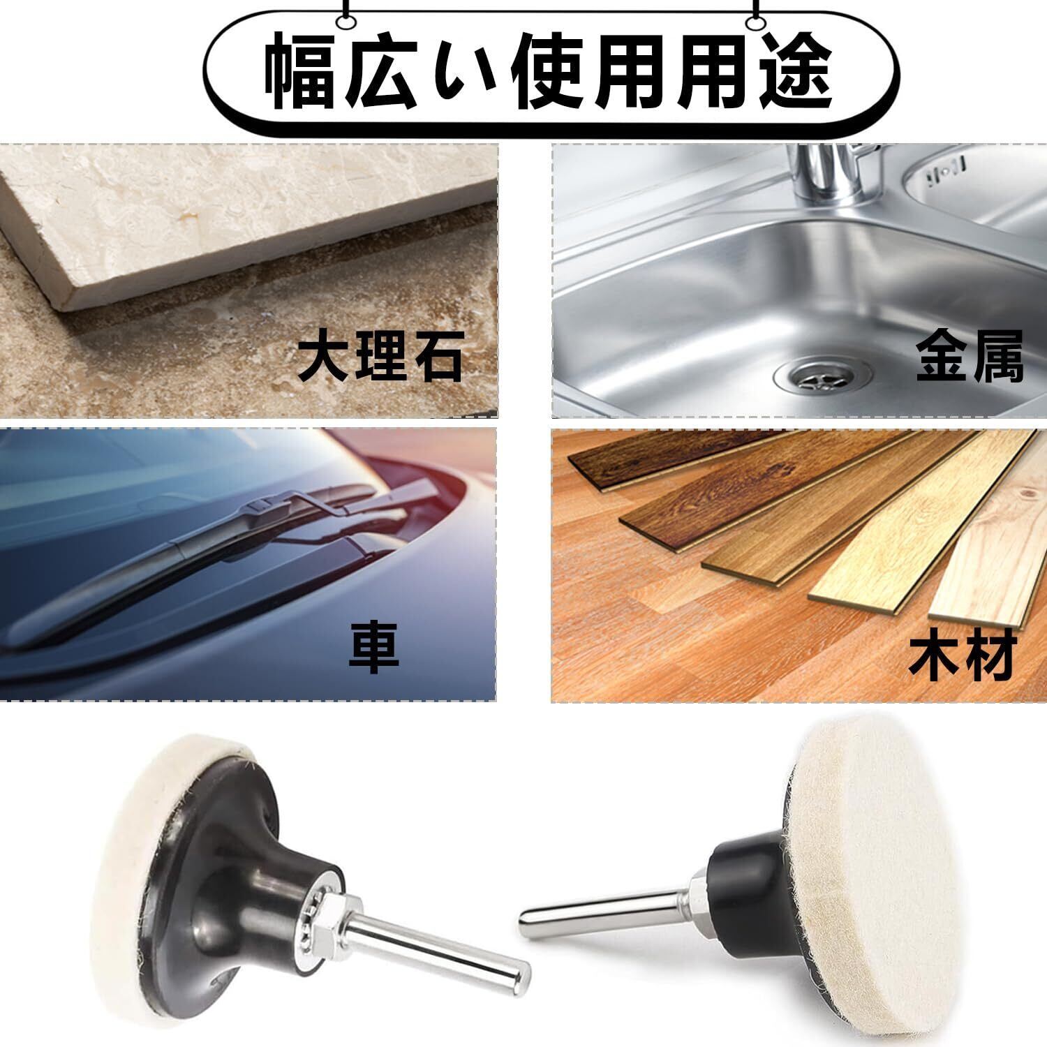研磨バフサイズ:フェルトバフ 外径50mm、厚さ8mm、ディスクブラケット直径45mm、軸の直径6mm、高さ60mm、電動工具、電動ドリル、エア工具研磨機などに適用、して伝統的な手ヤスリと比べてよりリラックス