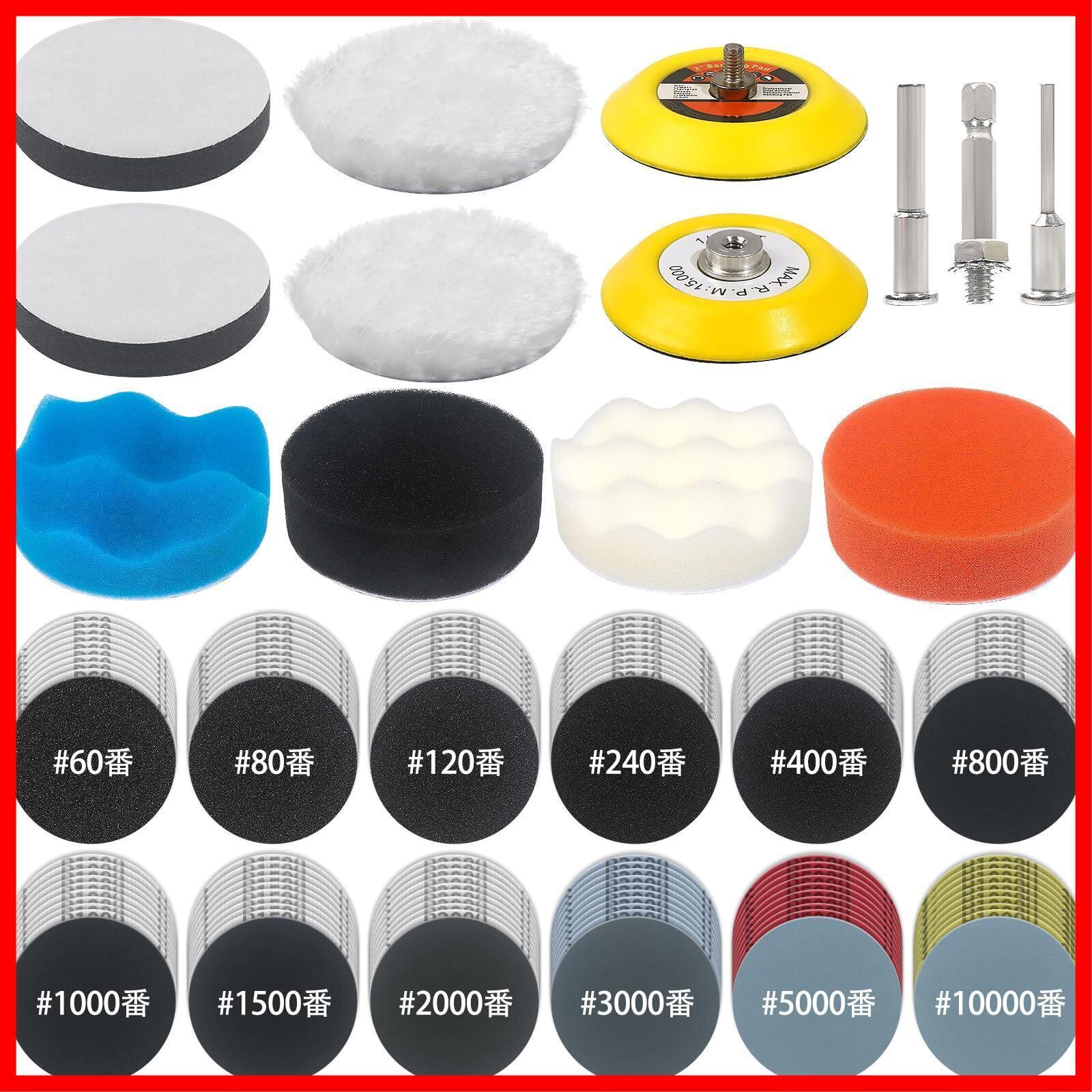 133枚 75mm 耐水ペーパー ウェット&ドライ対応 耐水サンドペーパーセット フック&ループ付き ヘッドライト磨き用 車・木材・金属・ガラス・レジン研磨用 光沢仕上げ 電動ドリル用ポリッシングキット(12種類 60 80 120 240 400 800 1000 1500 2000 3000 5000 10000各10枚)