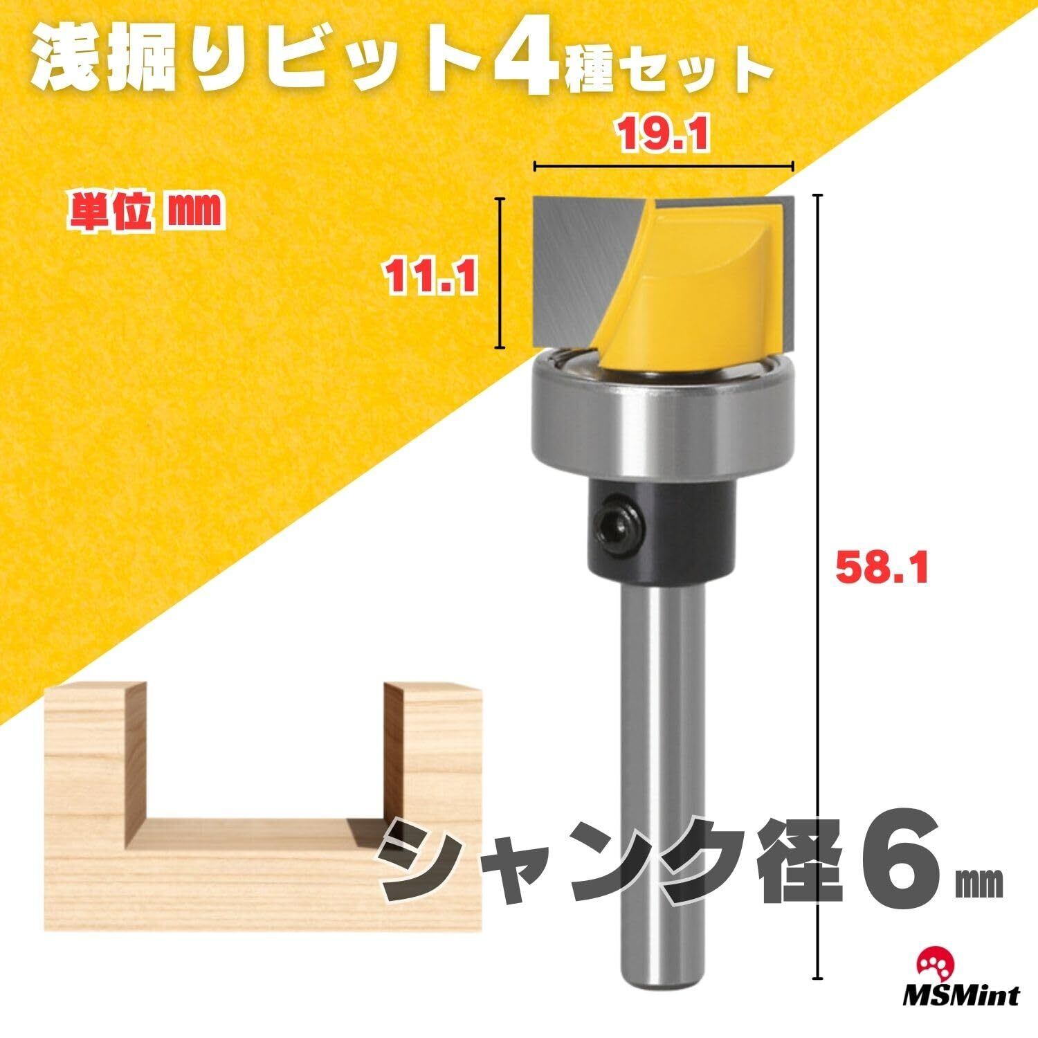 MSMint 浅彫り ほぞ ホゾ 段欠き 6㎜軸 ルータービット トリマービット 木工 コロ付き (浅彫りビット 4本セット)