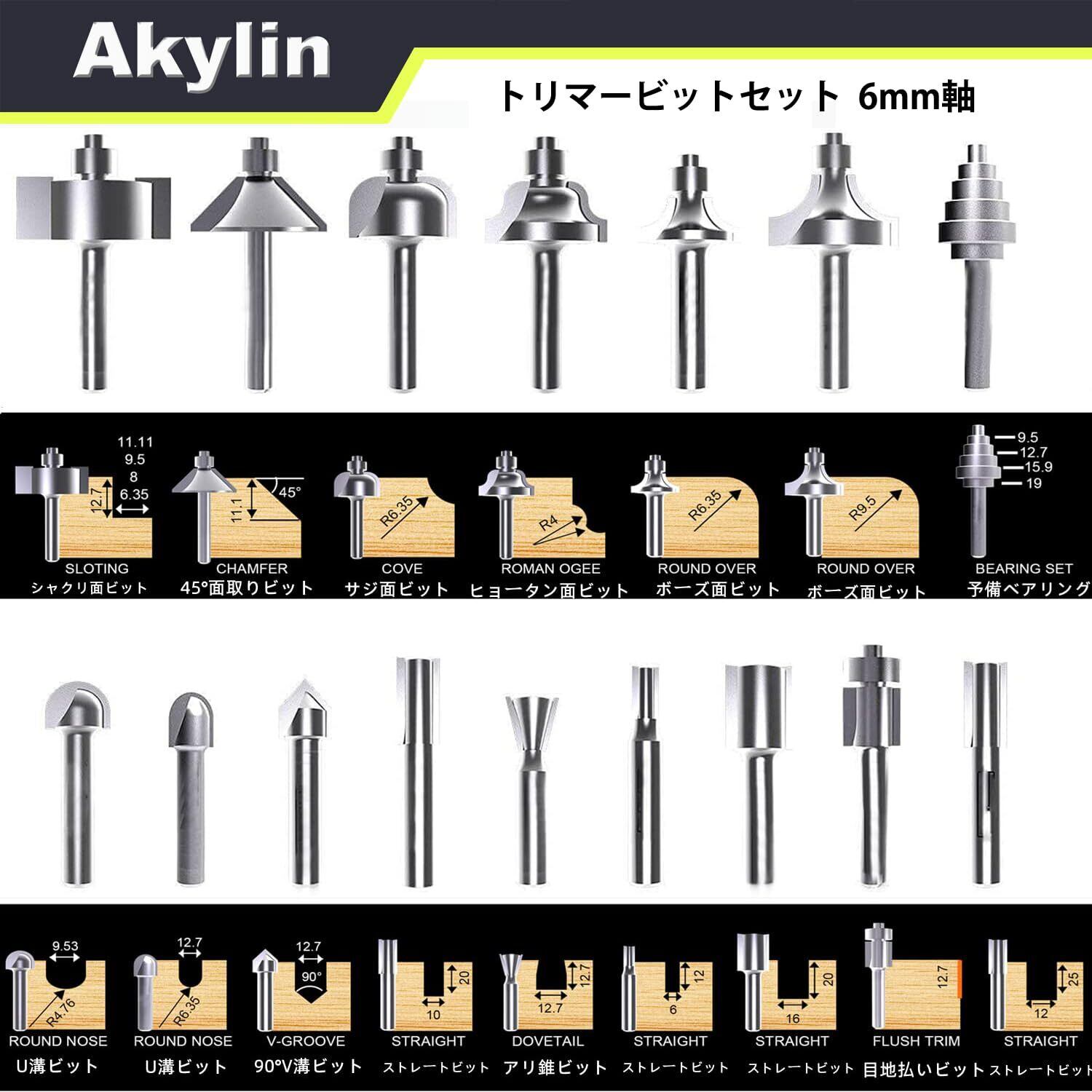 【梱包内容】:15*トリマビット、4*予備ベアリング、六角レンチ、ビット仕様カード。