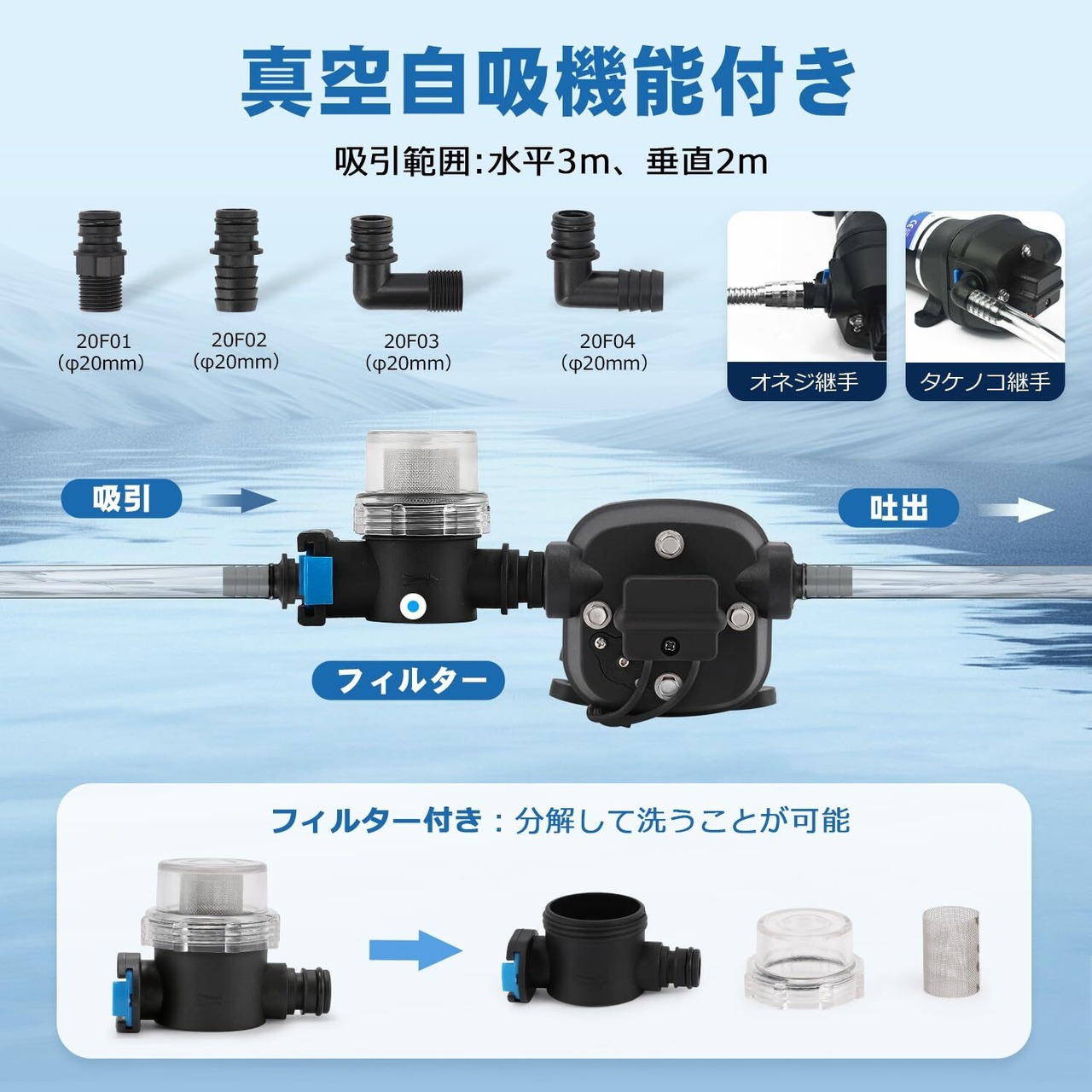 NEWTRY 給水 排水ポンプ ダイヤフラムポンプ 自吸式ウォーターポンプポンプ RV水道水ポンプ 自動スイッチ 大流量 17L/min (110V)