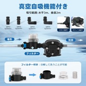 【特徴】1.低騒音2.低電流3.自吸機能4.短時間の空運転が可能5.約60度の液温に耐えられます6.自動オンオフ機能:ホースが完全に密閉された状態で、蛇口を開けるとポンプが作動し、蛇口を閉めるとポンプが自動的に停止します。7.過熱防止機能:ポンプの作動時間が長すぎると、モーター内部の温度調節スイッチが自動的に電源を遮断し、モーターを保護します。