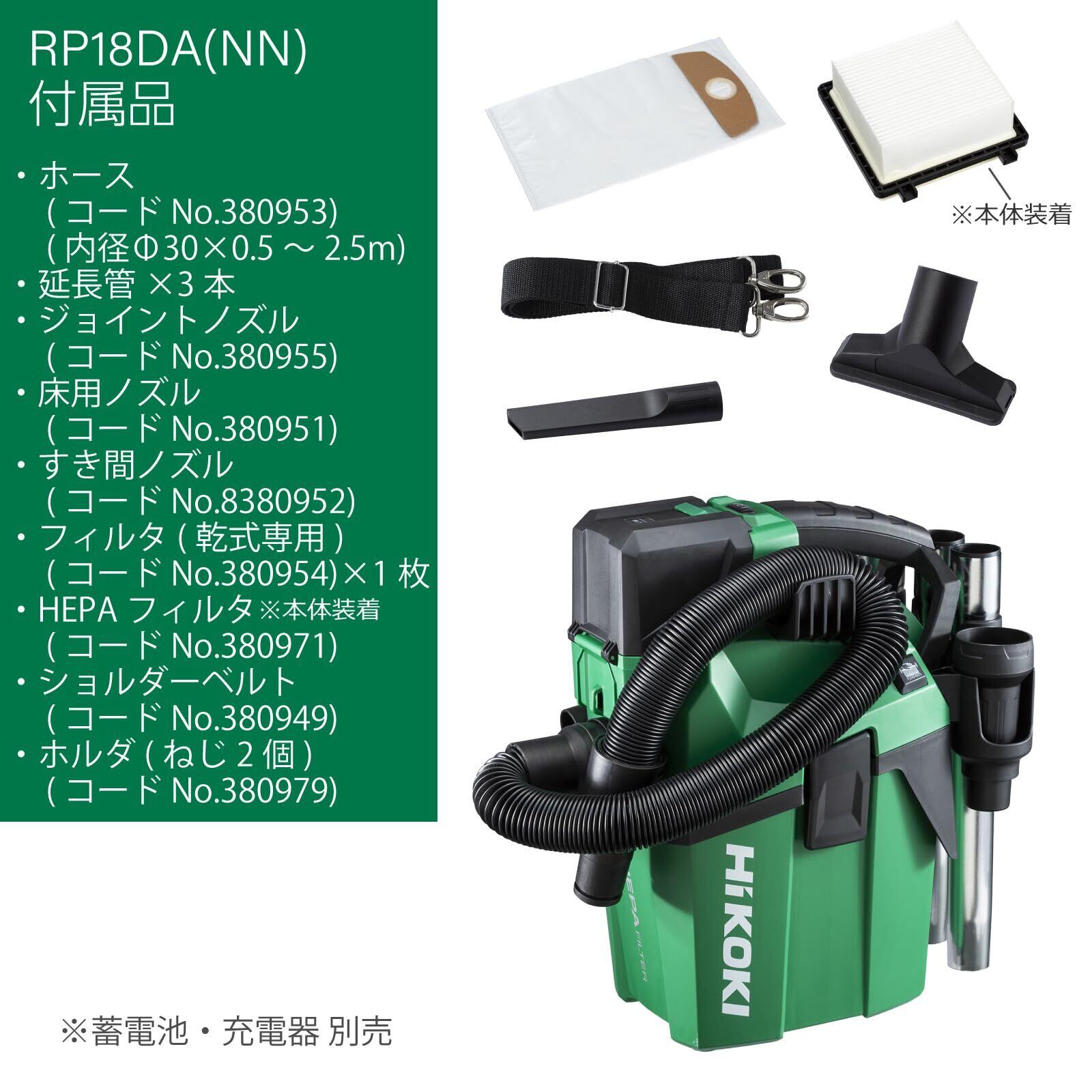 HiKOKI(ハイコーキ) 18V 充電式 集じん機 RP18DA 乾湿両用 蓄電池・充電機別売 RP18DA(NN)