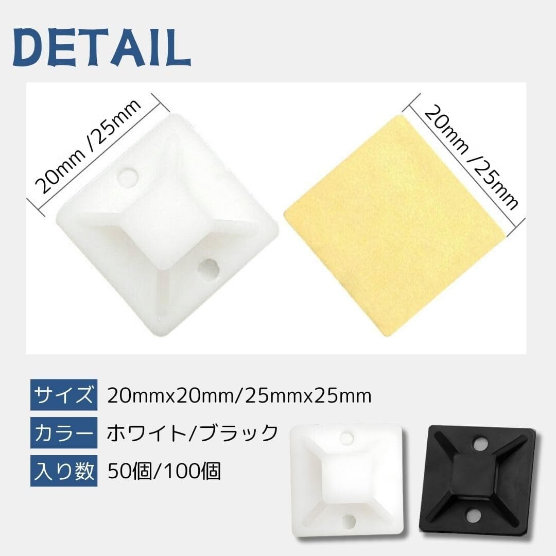I'm so happy 結束バンド ケーブルタイ 配線 固定 マウントベース 屋外 固定ベース (黒 25×25mm/100個)